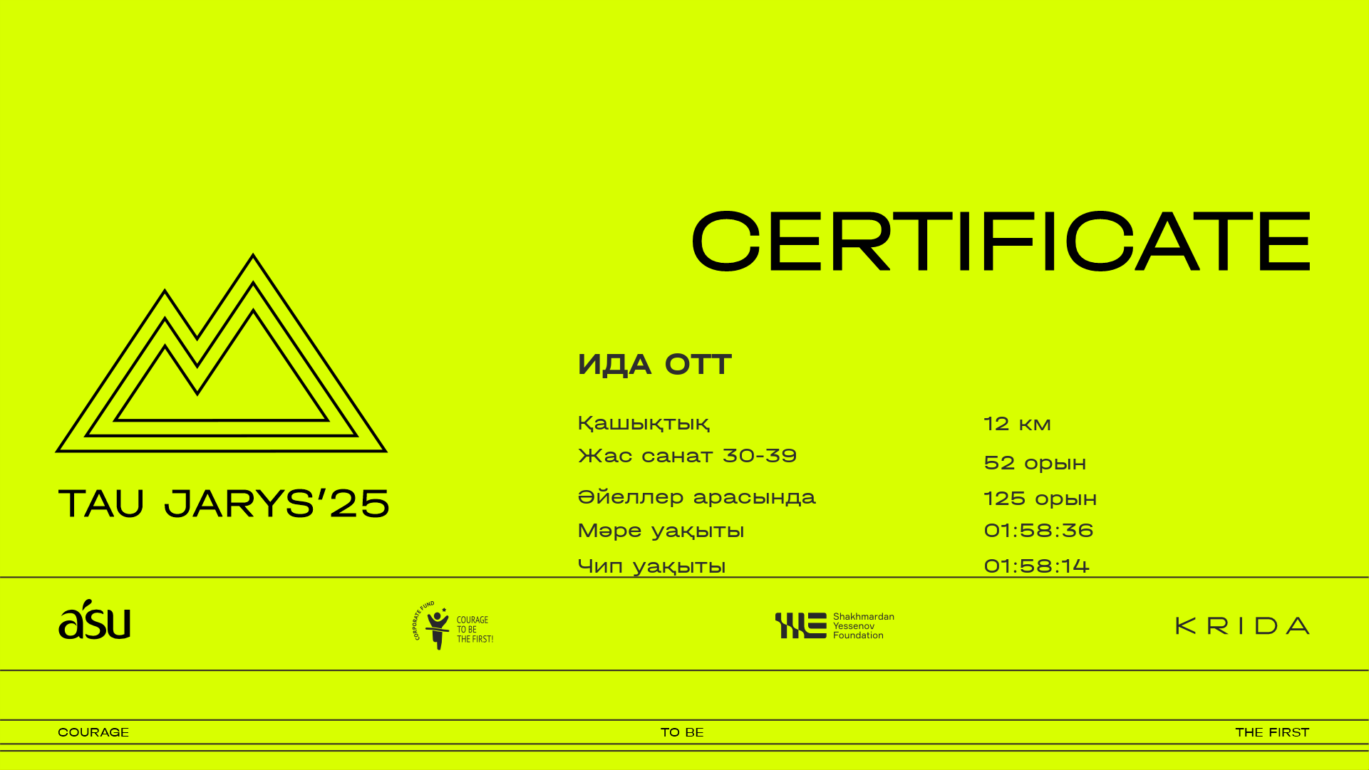 | 496 | Ида Отт | ![]() | Алматы | 23 | 00:13:52.60 | 00:36:56.90 | 00:48:36.30 | 01:14:40.50 | 01:36:55.10 | 01:48:34.90 | 01:58:36.00 | 01:58:14.20 | Жүктеп алу |