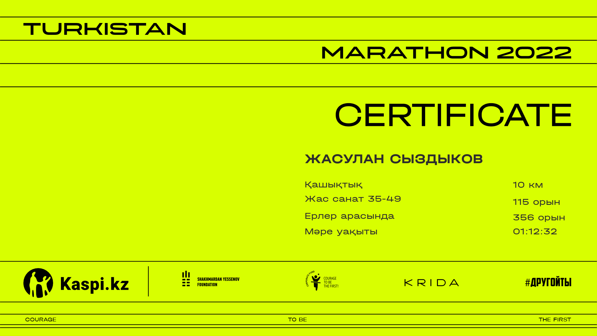 | 581 | Джангир Мырзакулов | ![]() | Шымкент | 1130 | 00:31:34.98 | 01:12:17.73 | 01:12:07.54 | Жүктеп алу |