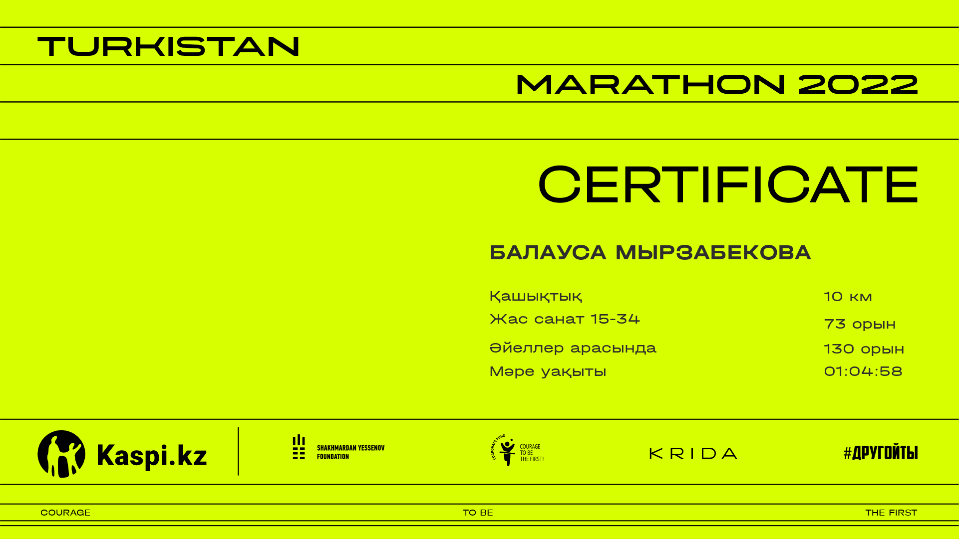 | 225 | Казбек Кусаинов | ![]() | Алматы | 797 | 00:28:17.09 | 00:55:22.30 | 00:54:43.90 | Жүктеп алу |