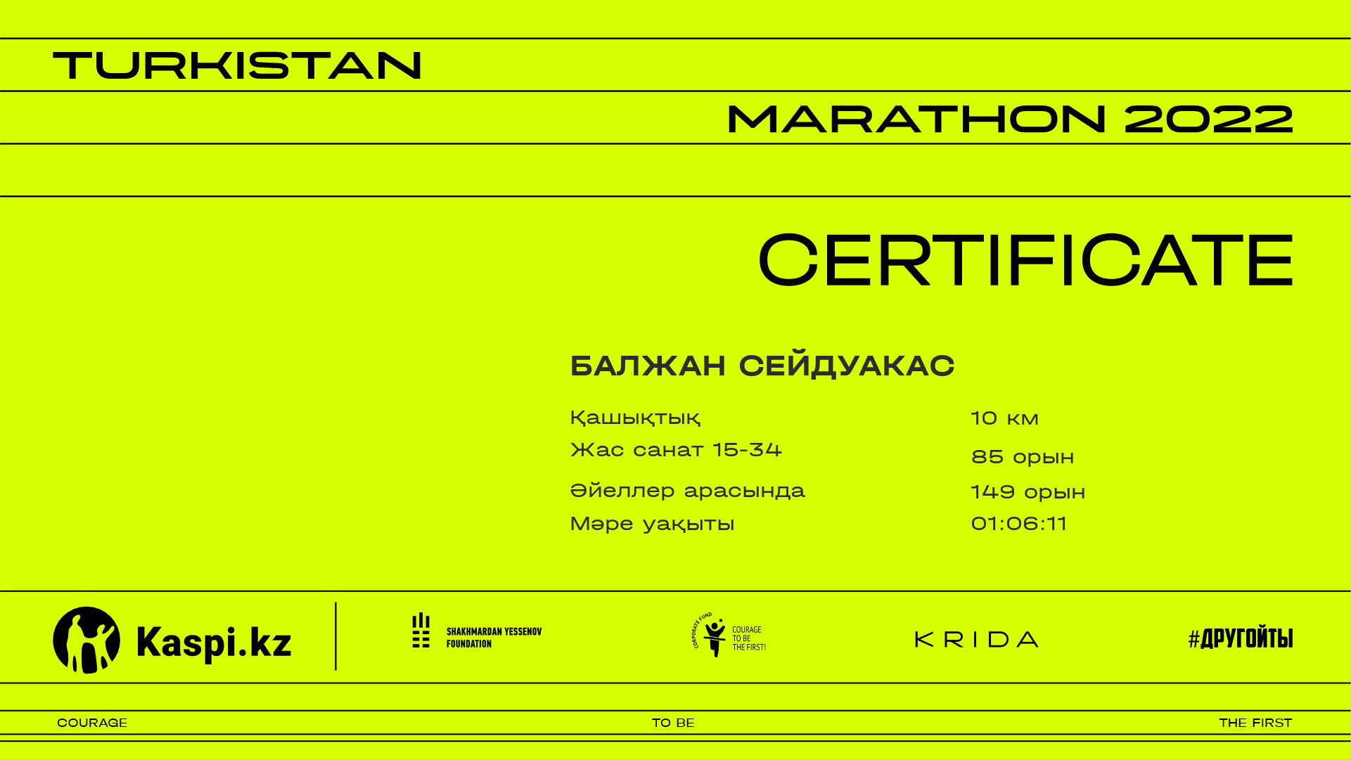 | 469 | Даурен Каллашович | ![]() | Шымкент | 1469 | 01:06:47.73 | 01:06:47.21 | Жүктеп алу | |