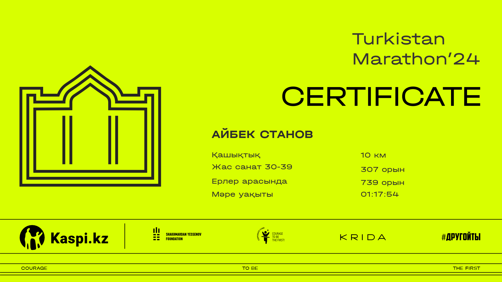 | 1068 | Айбек Станов | ![]() | Алматы | 1570 | 00:39:11 | 01:17:54 | 01:16:46 | Жүктеп алу |