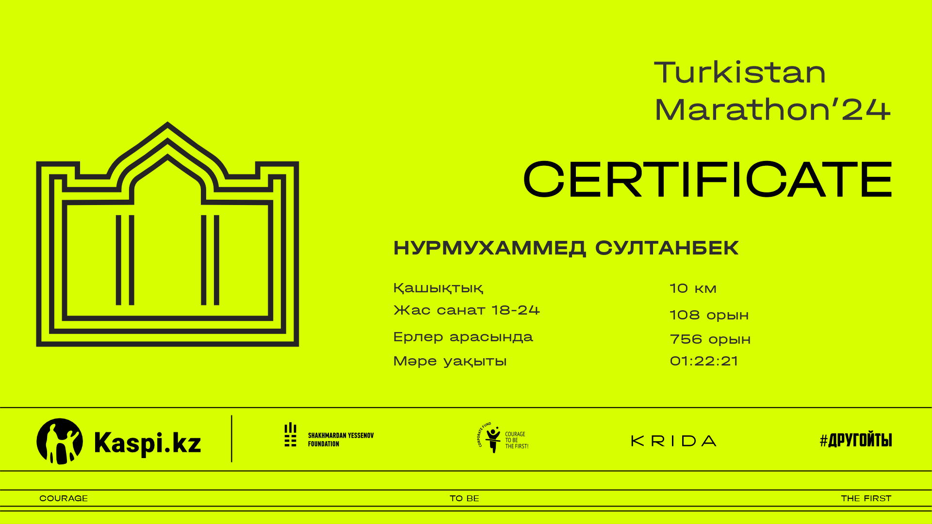 | 1116 | Нурмухаммед Султанбек | ![]() | Туркестан | 2232 | 00:40:05 | 01:22:21 | 01:21:10 | Жүктеп алу |