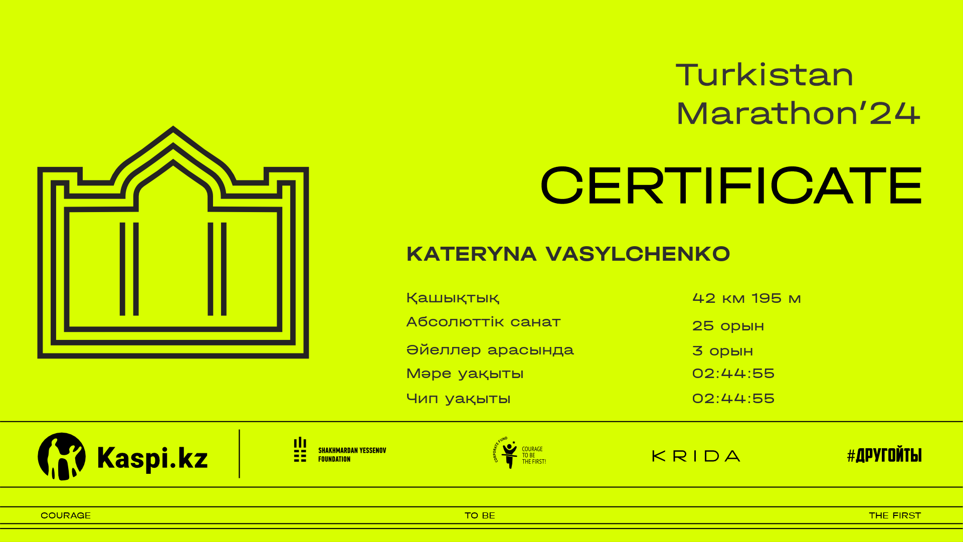 | 33 | Нургуль Жумагали | ![]() | Шымкент | 134 | 00:27:42 | 00:58:24 | 01:59:32 | 03:05:01 | 03:41:31 | 04:13:23 | 04:13:13 | Жүктеп алу |