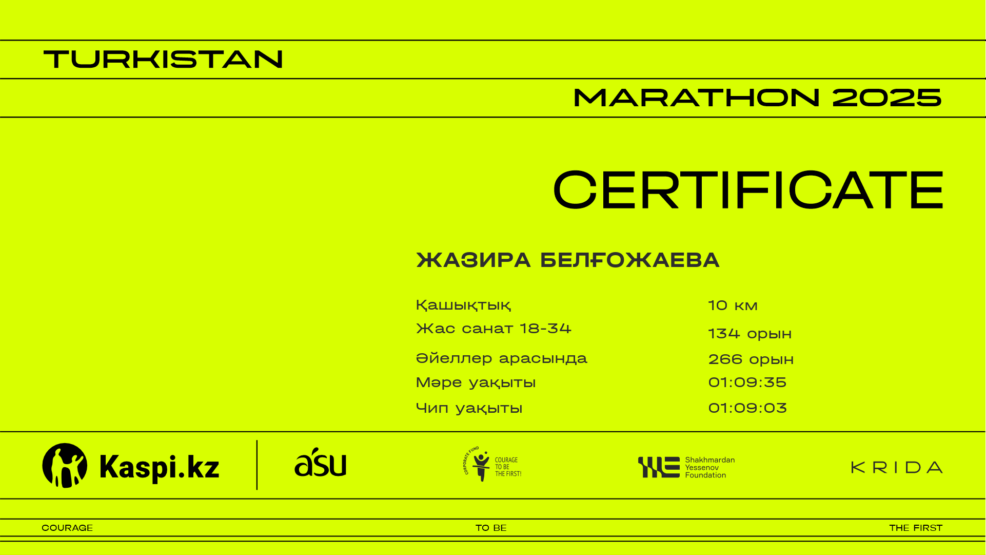 | 848 | Absemetova Zhazira | ![]() | Тараз | 1986 | 00:43:05 | 01:08:33 | 01:07:56 | Жүктеп алу |