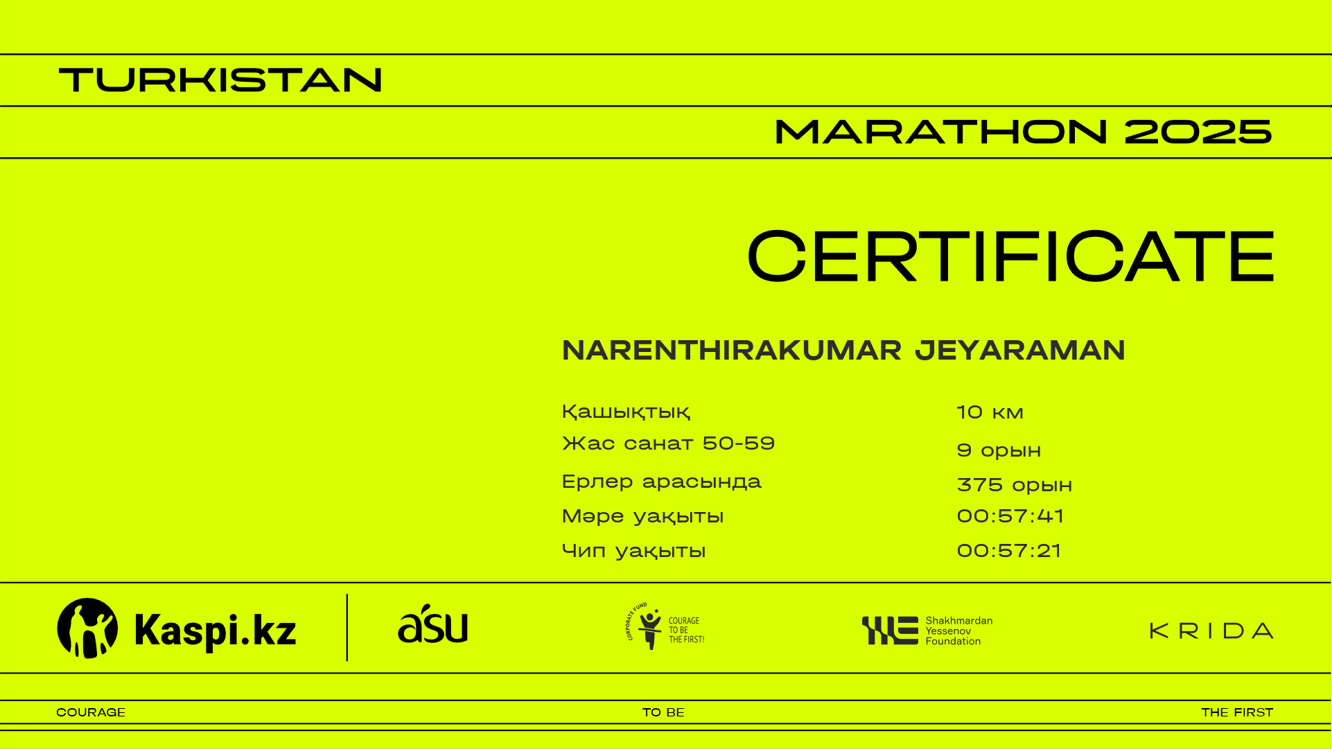 | 501 | Narenthirakumar Jeyaraman | ![]() | Madurai | 1843 | 00:36:20 | 00:57:41 | 00:57:21 | Жүктеп алу |