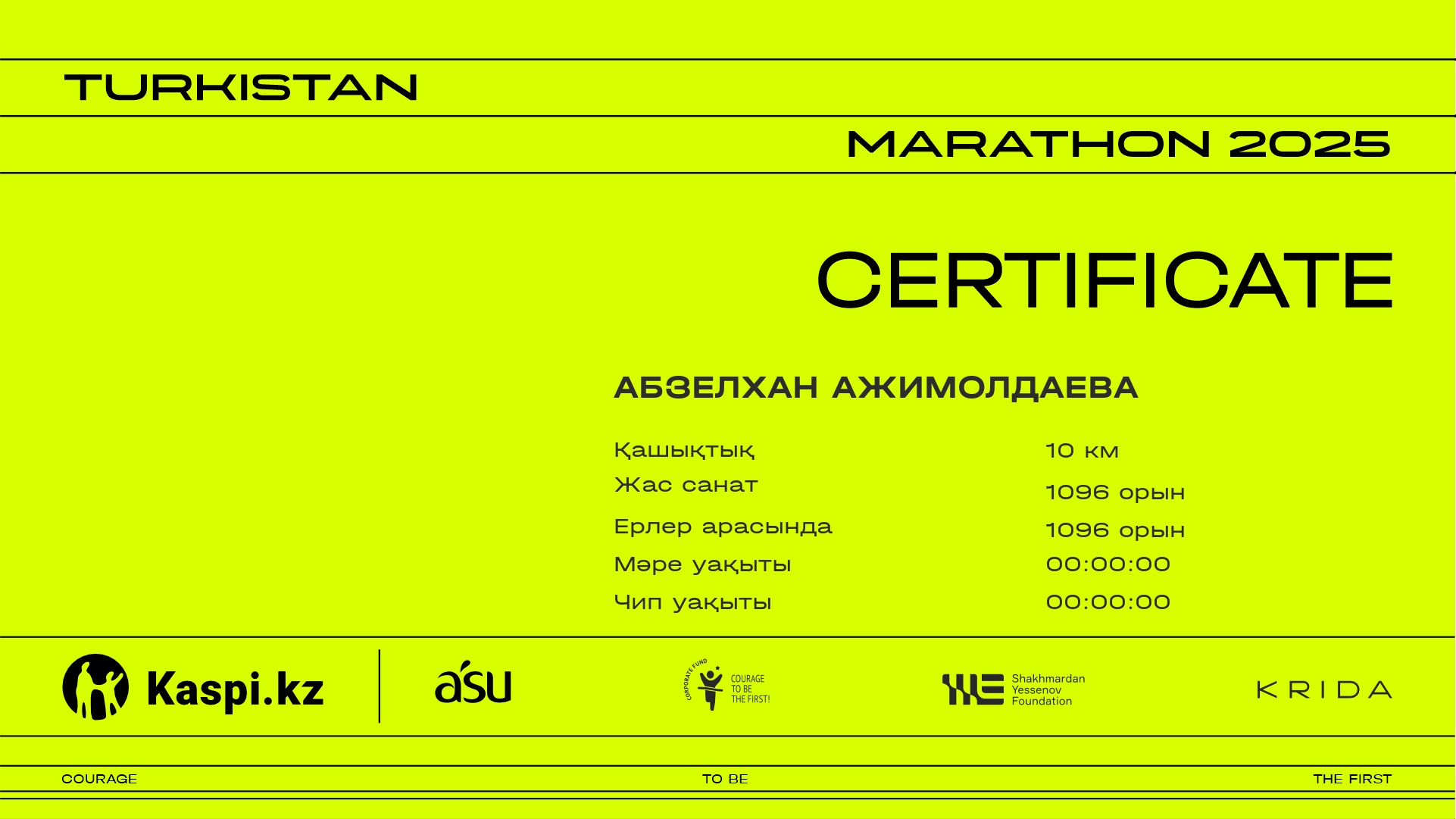 | 703 | Женисхан Өмірханұлы | ![]() | Шымкент | 1485 | 01:03:23 | 01:02:24 | Жүктеп алу | |