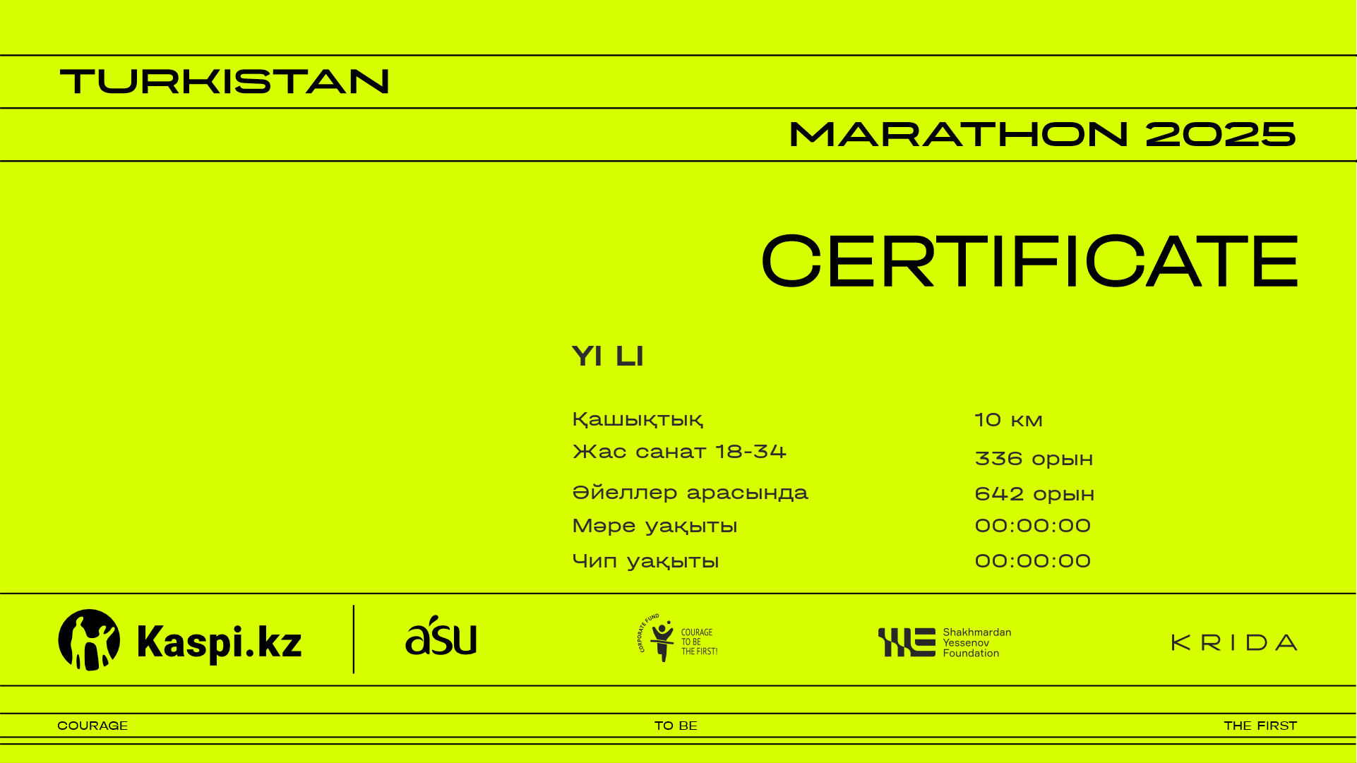 | Орын | Қатысушы | Ел | Қала | Нөмір | 6.25 km | Финиш | Уақыт чипі | Сертификат |