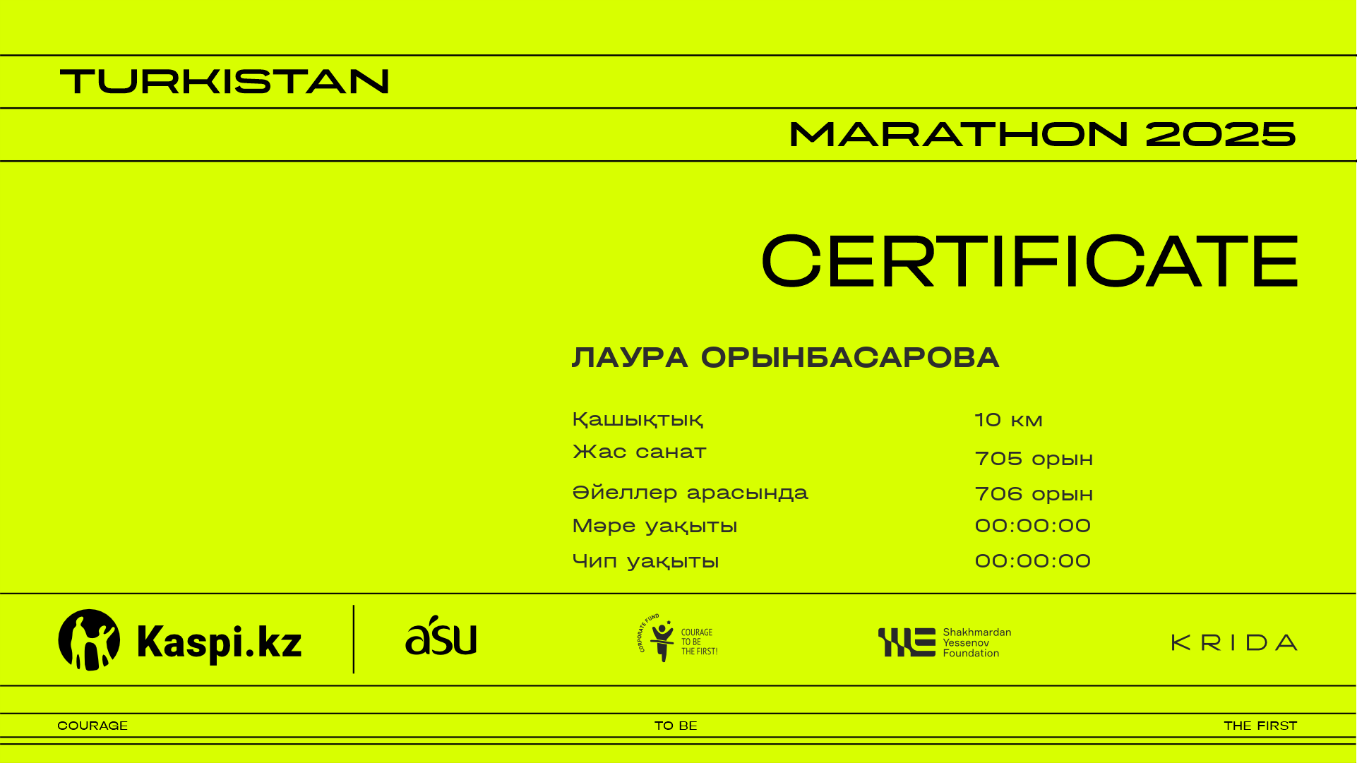 ОрынҚатысушыЕлҚалаНөмір6.25 kmФинишУақыт чипіСертификат