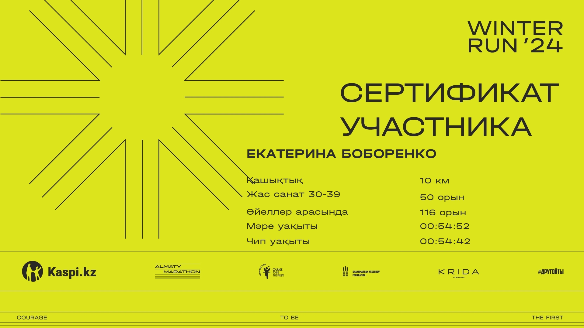 ОрынҚатысушыЕлҚалаНөмір1.5 km5.0 km8.5 kmФинишУақыт чипіСертификат