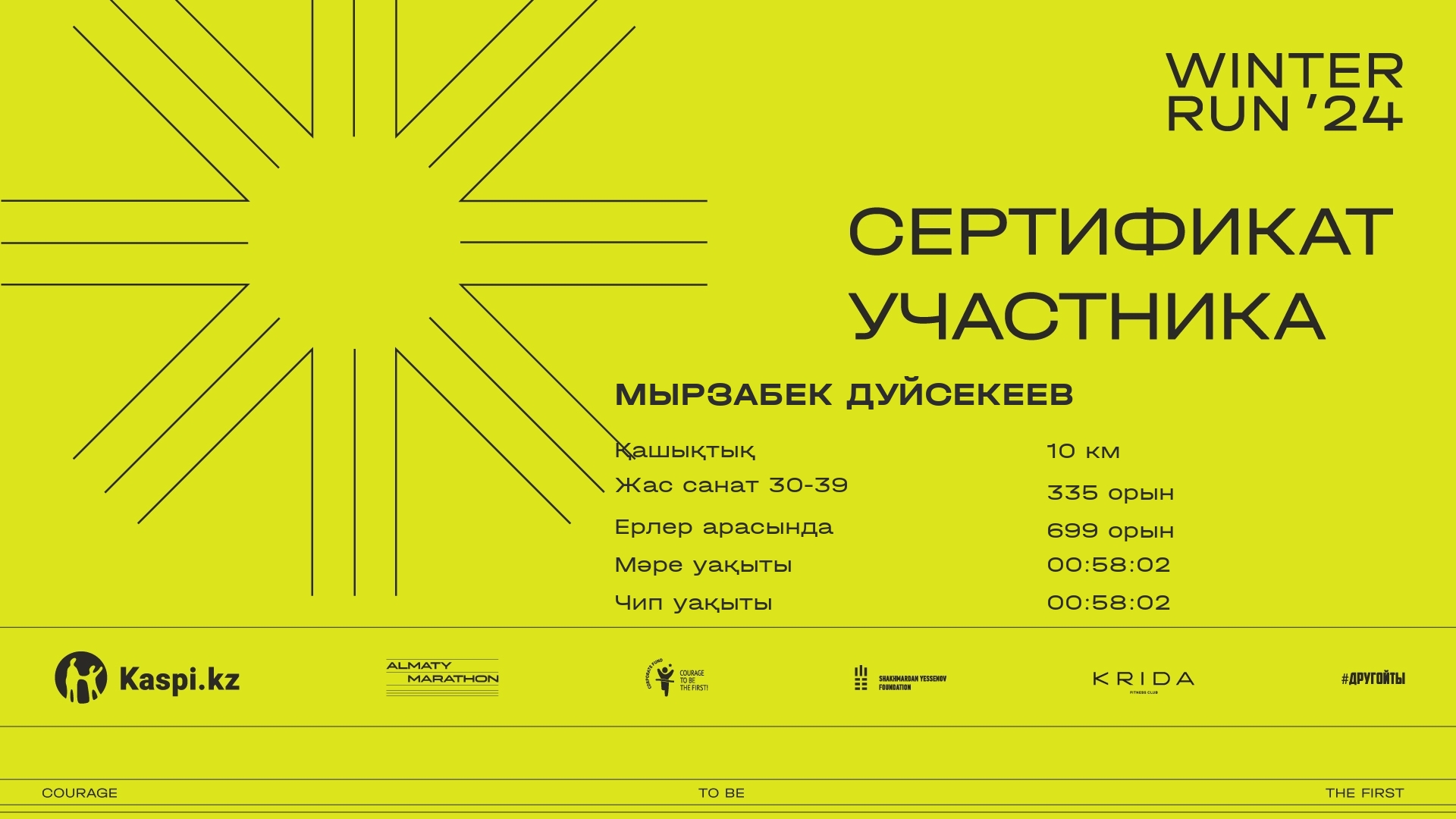 | DNS | Нурлан Момынов | ![]() | Караганда | 1987 | --:--:-- | --:--:-- |