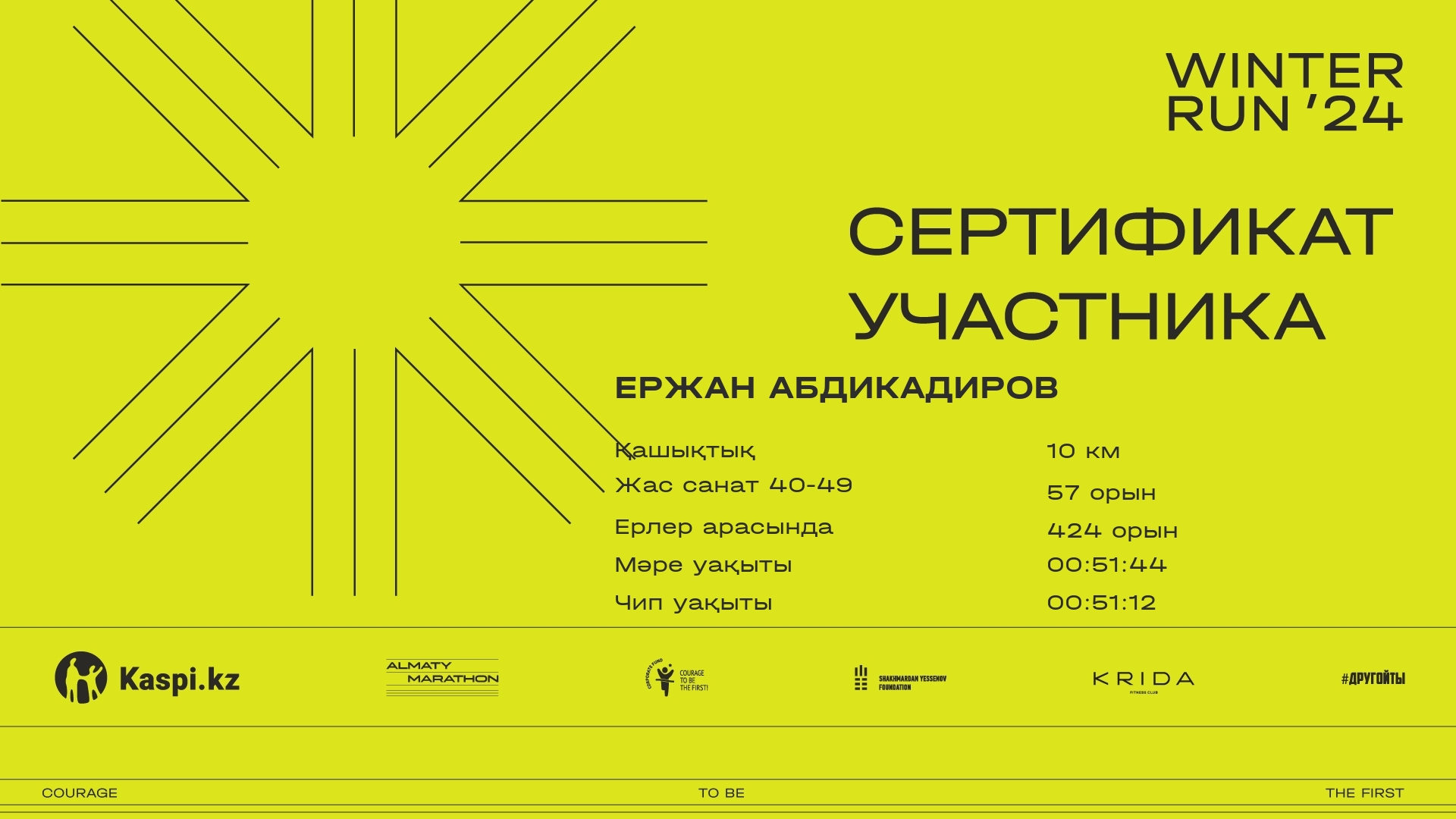 | 491 | Ержан Абдикадиров | ![]() | Алматы | 1635 | 00:08:01 | 00:27:07 | 00:43:52 | 00:51:44 | 00:51:12 | Жүктеп алу |