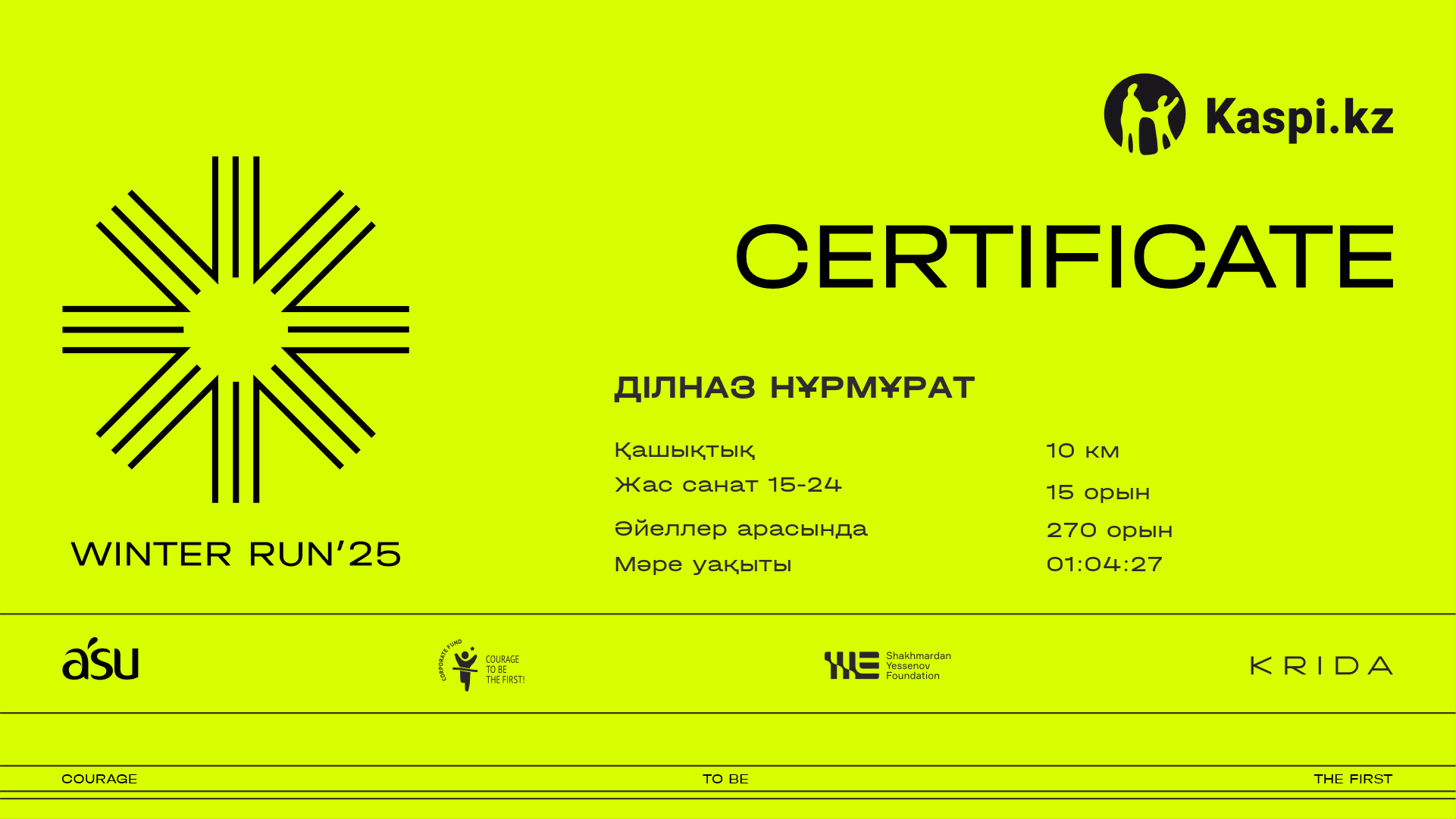 | 1077 | Dimash Zhumagali | ![]() | Almaty | 423 | 00:24:04 | 00:47:49 | 01:06:10 | 01:06:03 | Жүктеп алу |