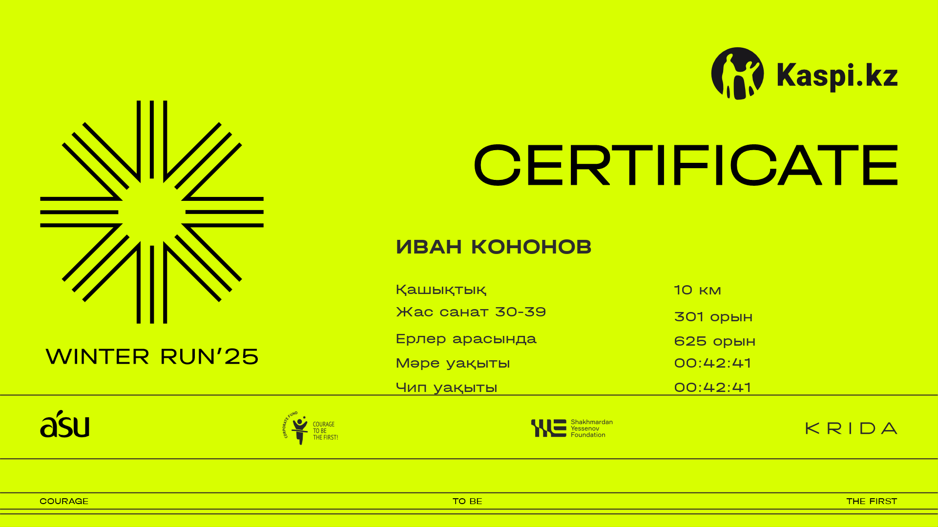 | 1618 | Берик Жакан | ![]() | Алматы | 263 | 00:44:13 | 01:15:52 | 01:41:41 | 01:40:34 | Жүктеп алу |