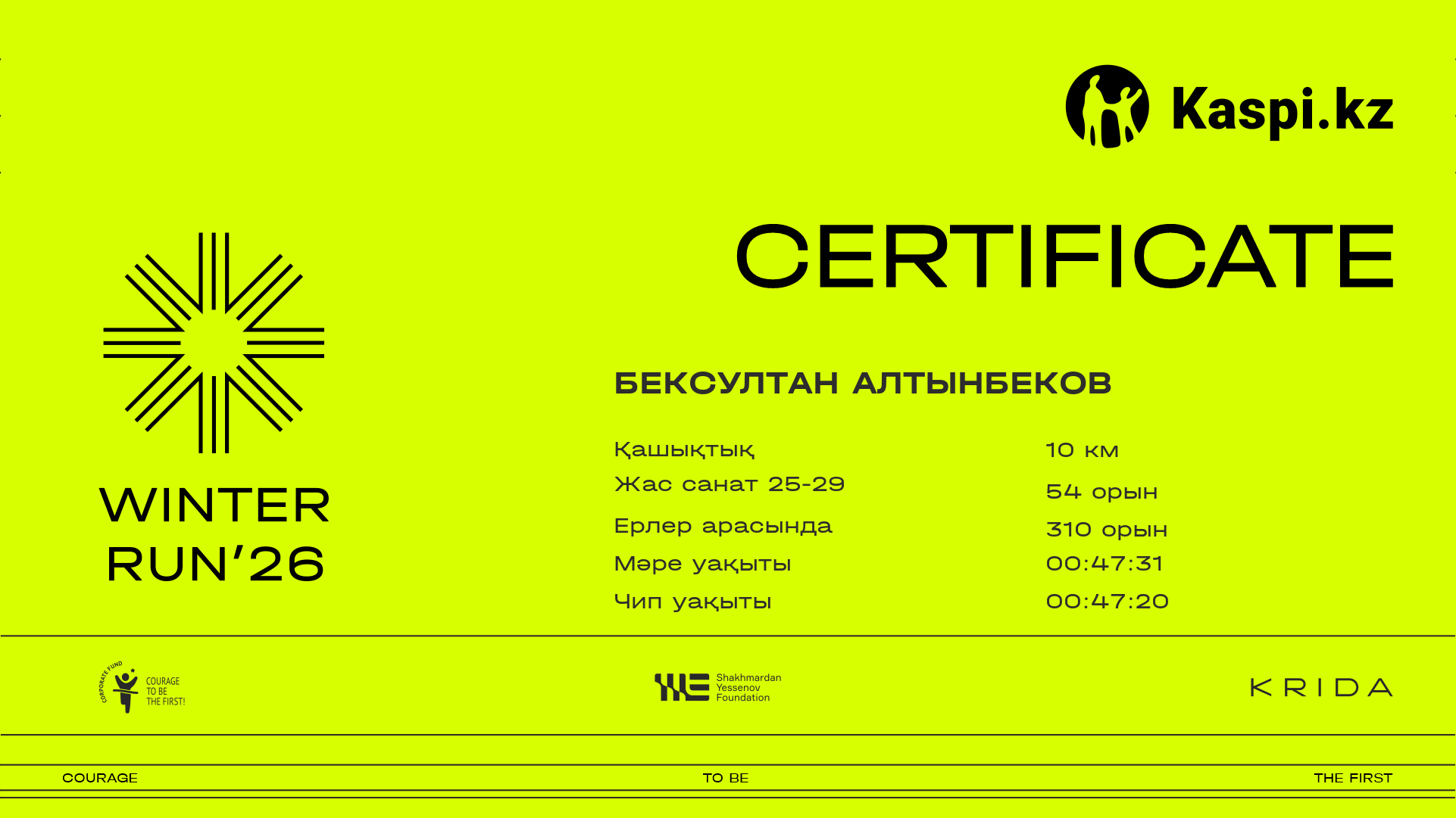| 347 | Бексултан Алтынбеков | ![]() | Алматы | 257 | 00:06:13.38 | 00:23:41.57 | 00:40:30.17 | 00:47:31.03 | 00:47:20.78 | Жүктеп алу |