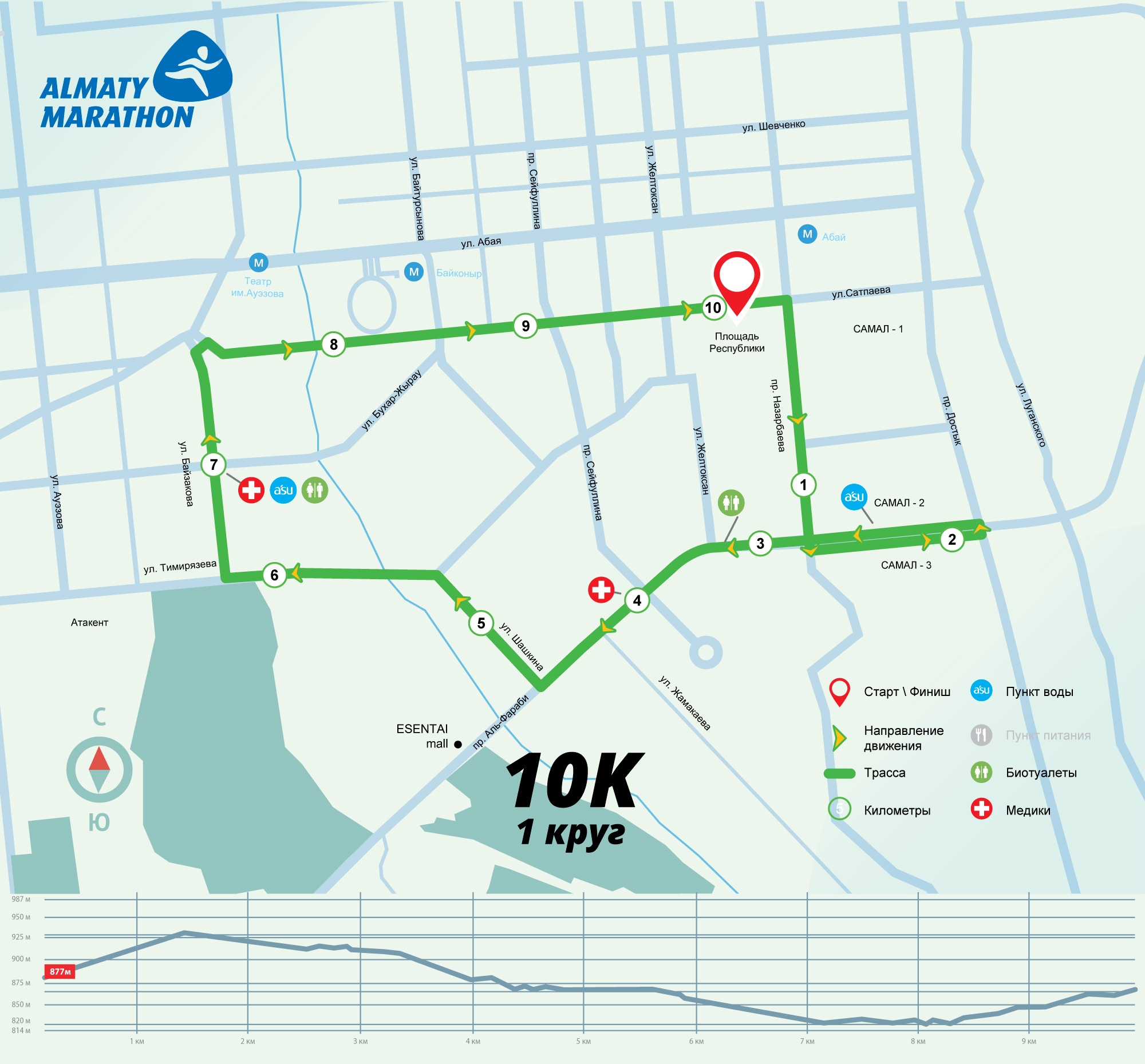 В рамках марафона пройдет Чемпионат Республики Казахстан по бегу на 10 км среди участников старше 35 лет.