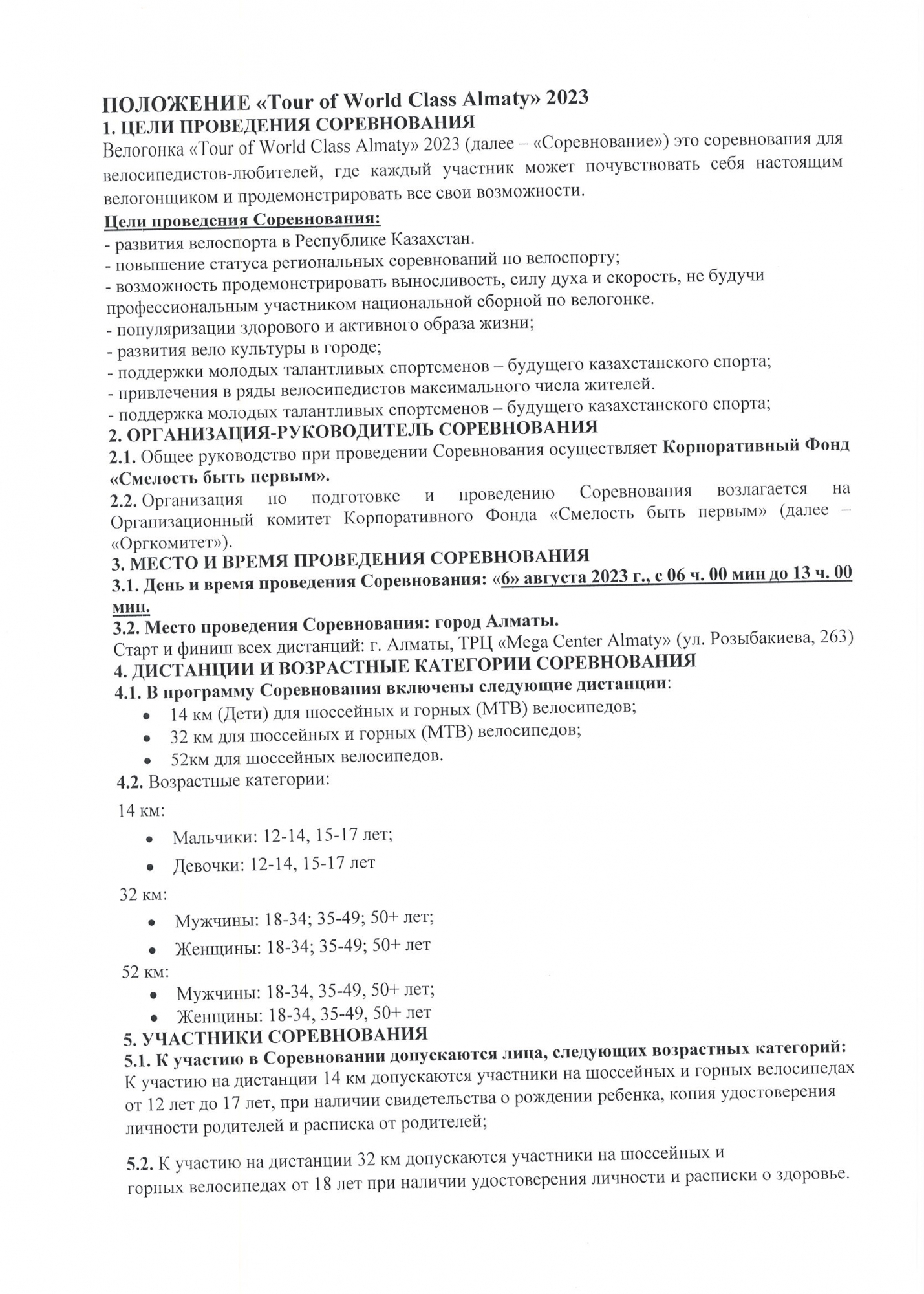 ПОЛОЖЕНИЕ «Tour of World Class Almaty» 2023