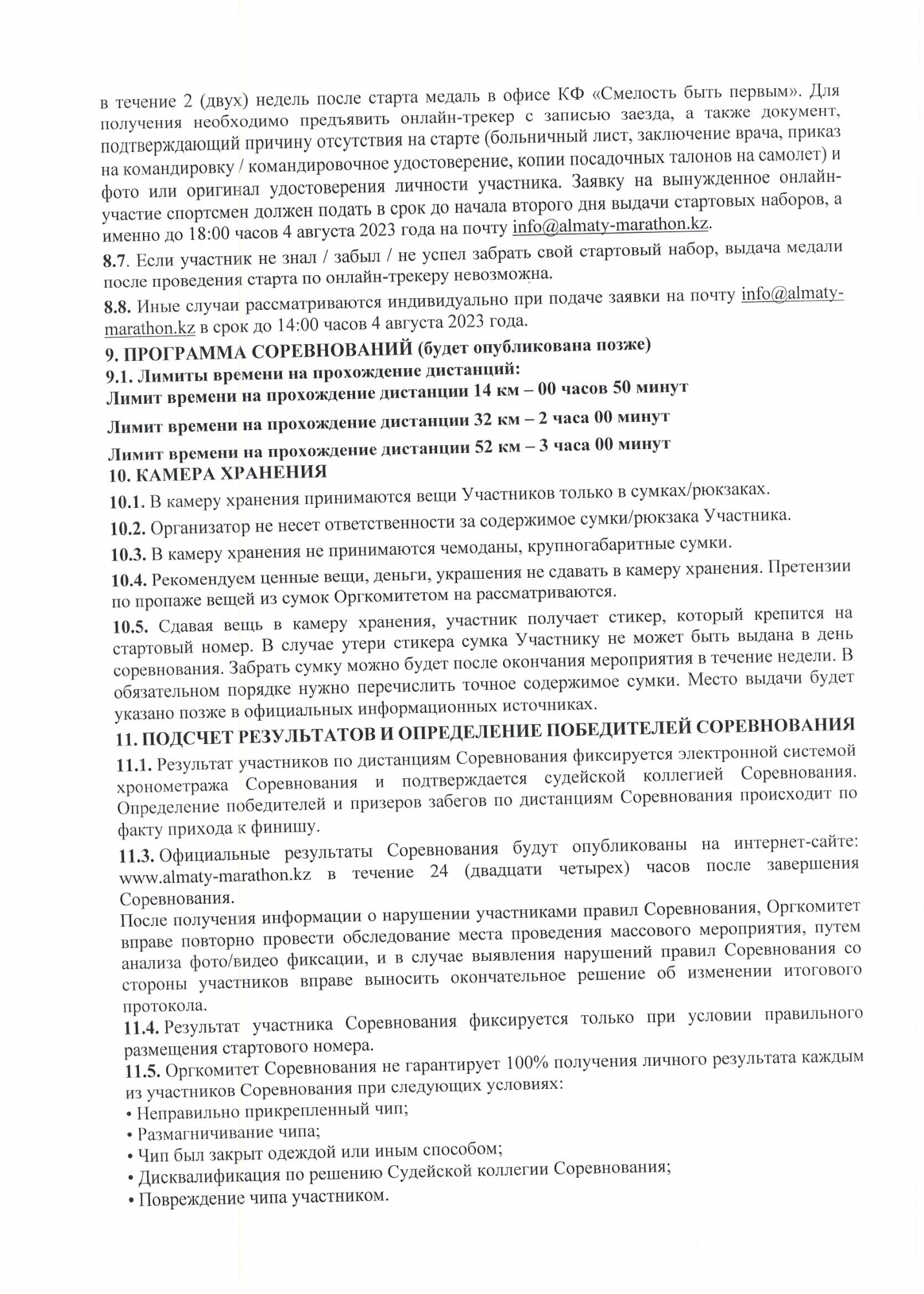 8.8. Иные случаи рассматриваются индивидуально при подаче заявки на почту info@almaty- marathon.kz в срок до 14:00 часов 4 августа 2023 года.