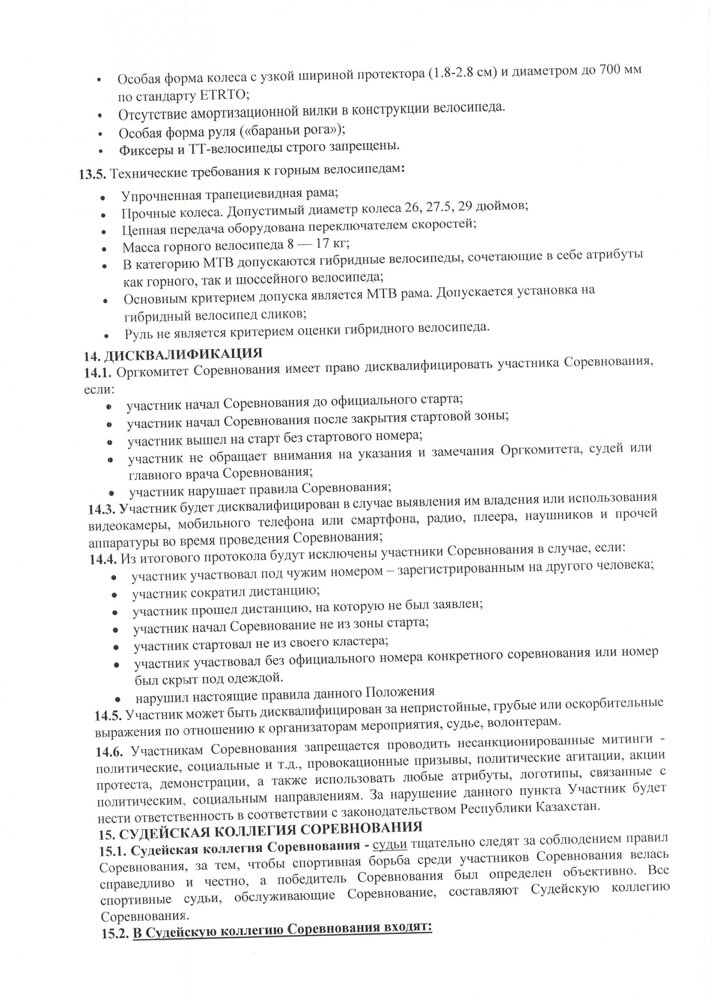 •Запрещается использовать любые способы и средства способные облегчить прохождение дистанции (мотор-колесо, электровелосипед и т.д.).