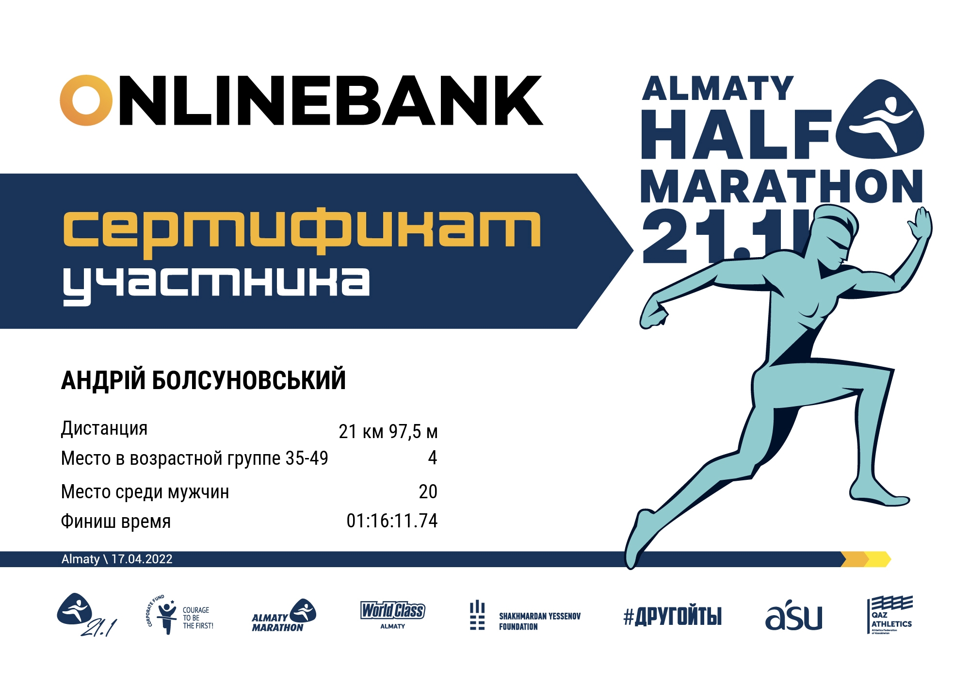 | 30 | Даулет Рахимбаев | ![]() | Алматы | 1514 | 00:17:16.34 | 00:36:40.20 | --:--:-- | 01:07:01.77 | 01:17:54.64 | 01:17:54.64 |
