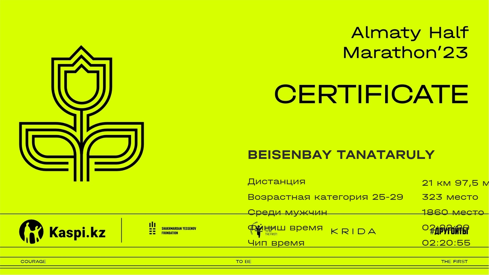 | 2218 | Beisenbay Tanataruly | ![]() | Almaty | 2548 | 00:29:30.18 | 01:03:17.38 | 01:36:11.55 | 02:14:25.65 | 02:22:29.47 | 02:20:55.79 | Скачать |