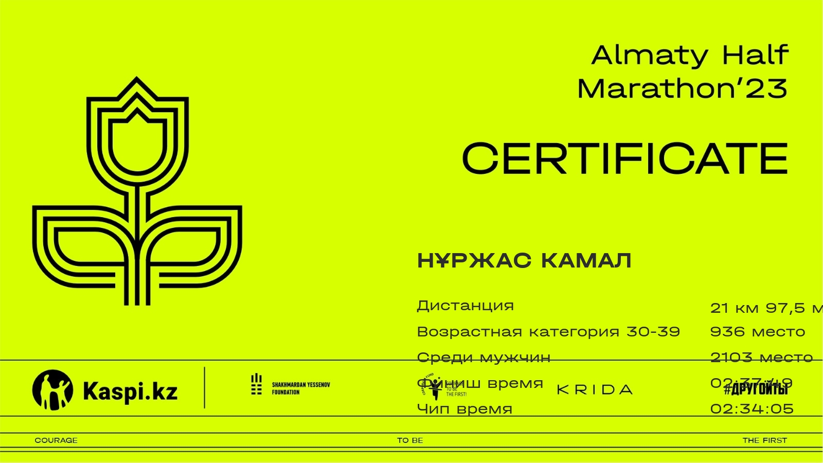 | 2583 | Нұржас Камал | ![]() | Алматы | 2687 | 00:38:51.50 | 01:19:16.25 | 01:55:02.33 | 02:30:36.31 | 02:37:49.05 | 02:34:05.80 | Скачать |