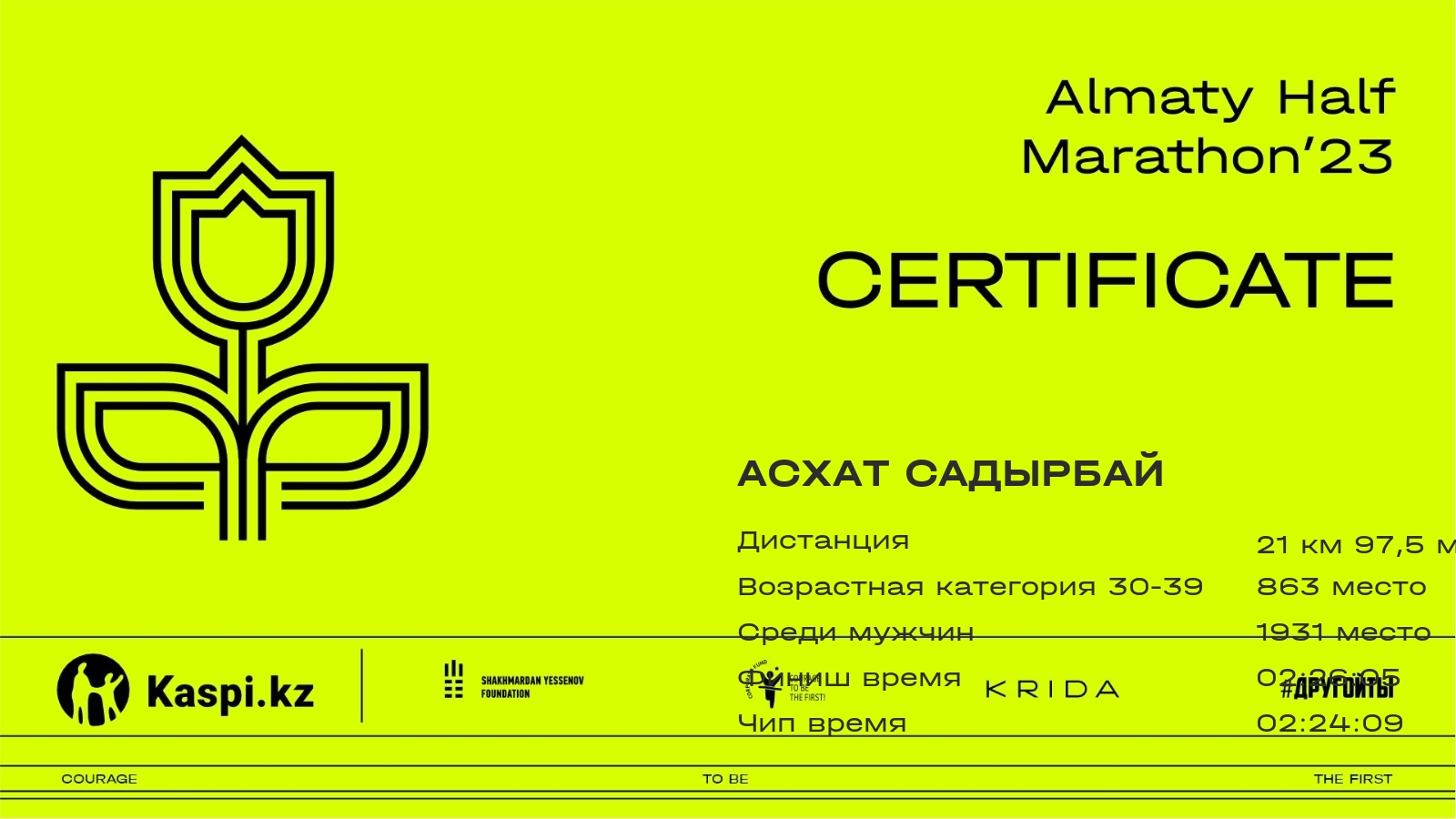 | DNF | Алмаз Коляков | ![]() | Алматы | 2518 | 00:35:52 | 01:24:54 | 02:08:34 | --:--:-- | --:--:-- | ||
