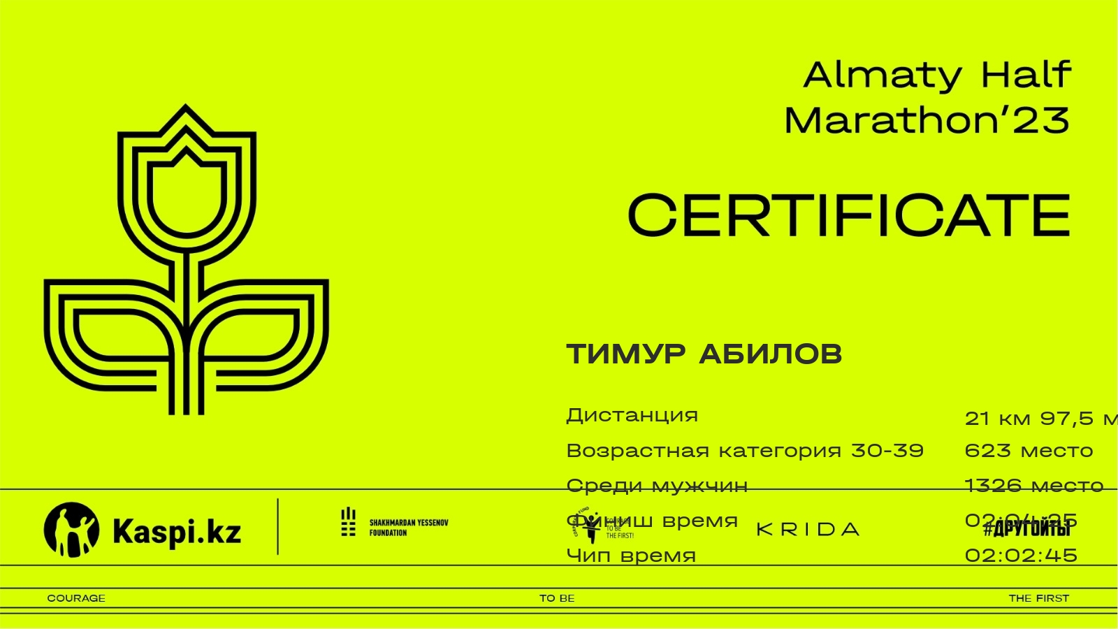 | 2588 | Темур Уразамбетов | ![]() | Актобе | 2081 | 00:30:28.94 | 01:08:20.74 | 01:47:56.47 | 02:31:52.50 | 02:37:59.66 | 02:36:14.64 | Скачать |