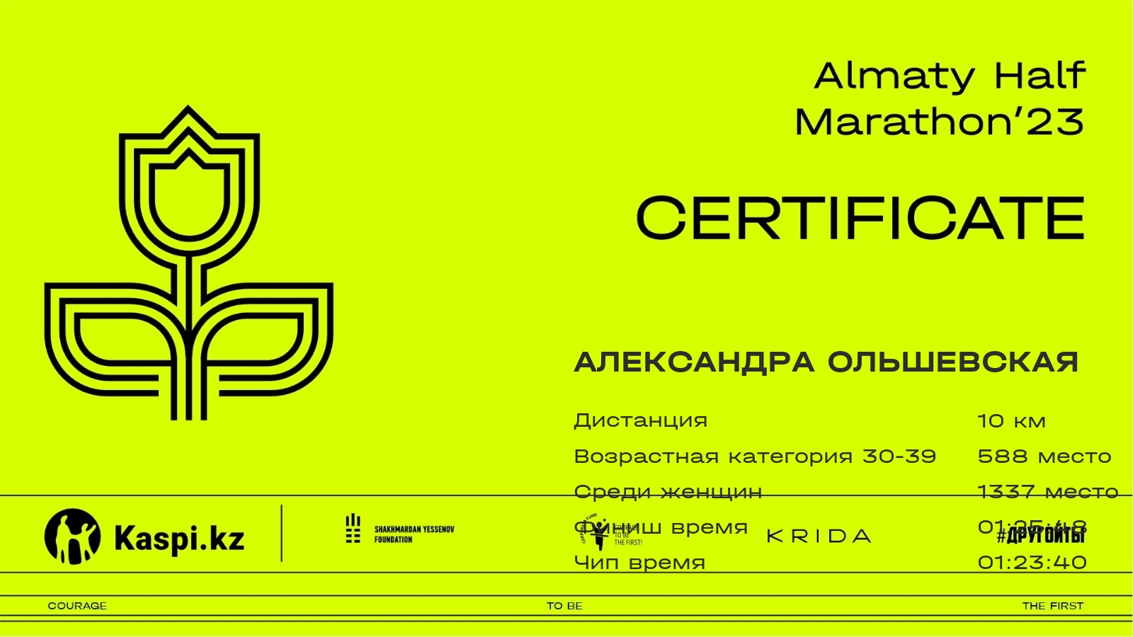 | 3121 | Сауле Мухиева | ![]() | Алматы | 5397 | 00:57:40.62 | 01:25:49.74 | 01:23:41.68 | Скачать |