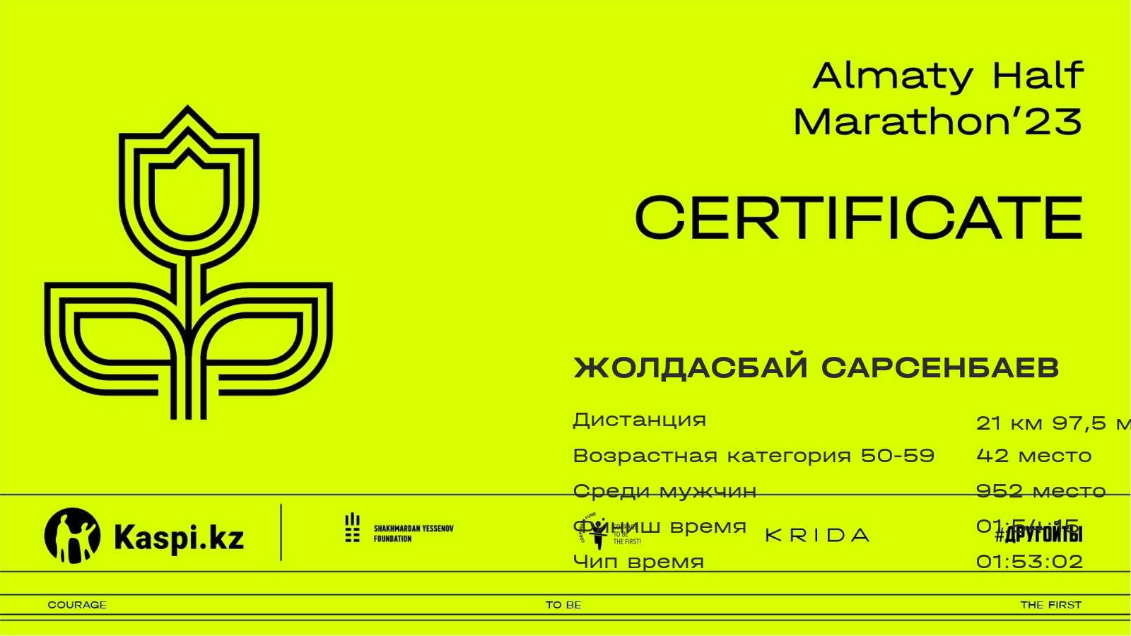 | 2596 | Merey Abdikhamitov | ![]() | Almaty | 476 | 00:34:00.14 | 01:13:40.95 | 01:49:29.34 | 02:29:39.23 | 02:38:26.12 | 02:36:29.16 | Скачать |