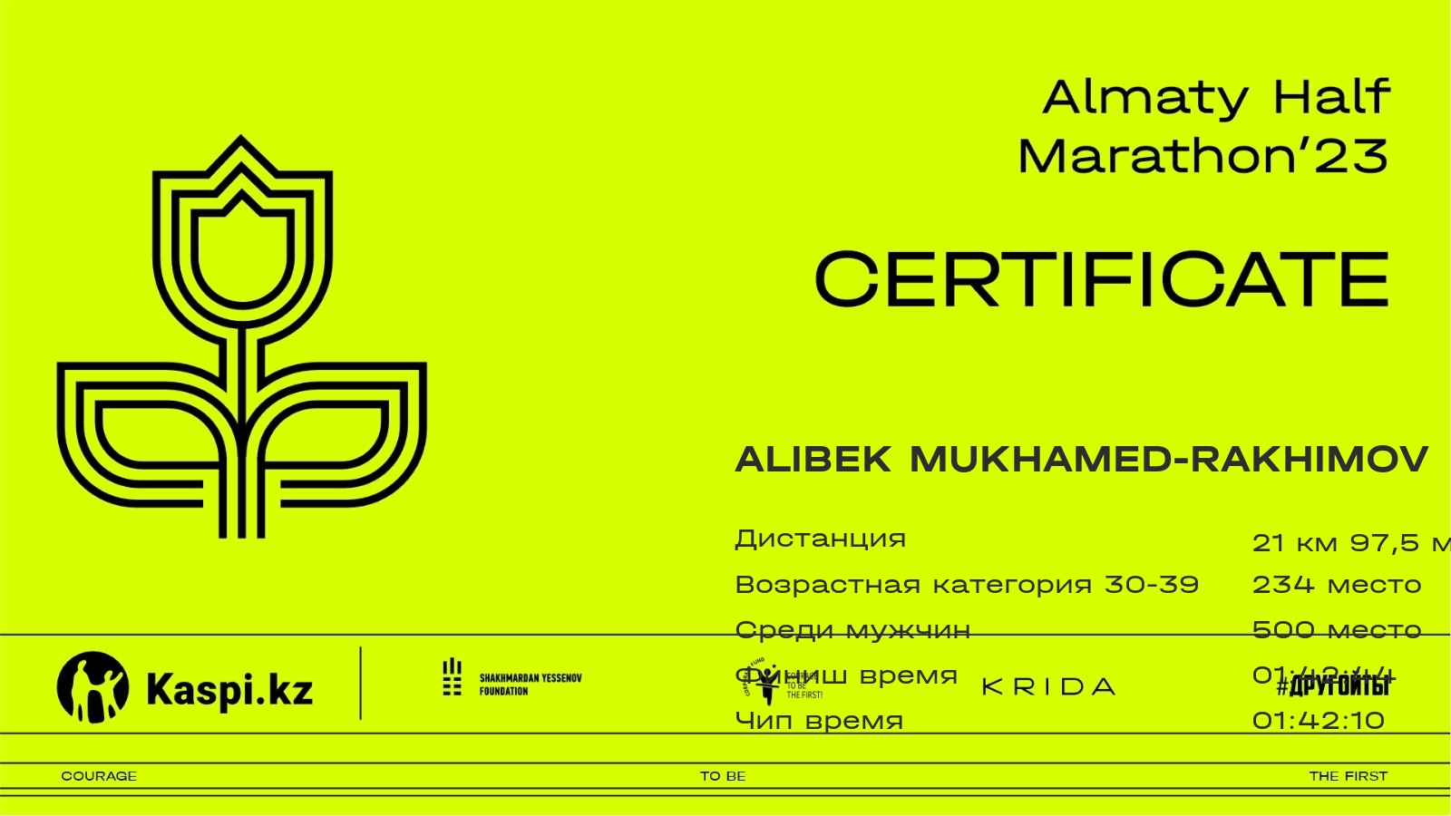 | 525 | Марат Асылбек | ![]() | Алматы | 2803 | 00:23:53.30 | 00:47:53.99 | 01:37:17.52 | 01:42:44.32 | 01:42:17.10 | Скачать | |