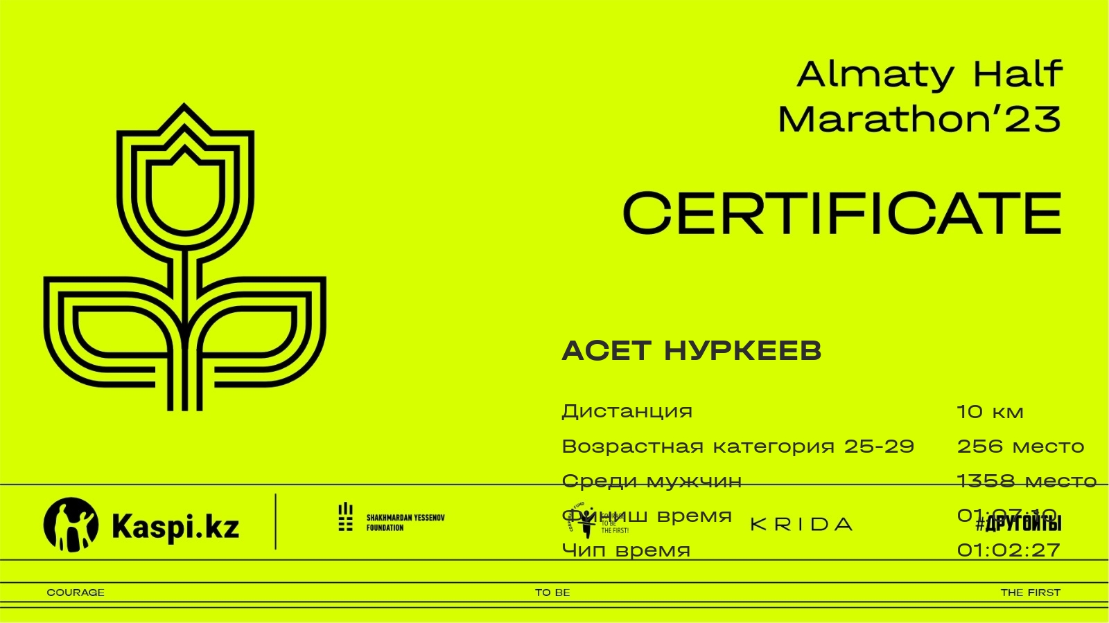 | 1436 | Kadyrzhan Bimanov | ![]() | Алматы | 6451 | 00:39:30.93 | 01:01:08.31 | 01:00:43.34 | Скачать |