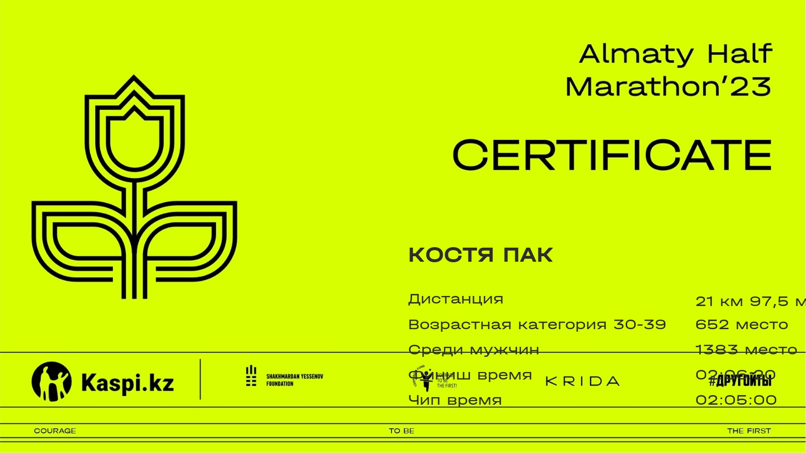 | 2597 | Кайрат Тулегенов | ![]() | Алматы | 780 | 00:34:33.10 | 01:10:36.33 | 01:51:04.37 | 02:31:50.68 | 02:38:27.88 | 02:36:41.51 | Скачать |
