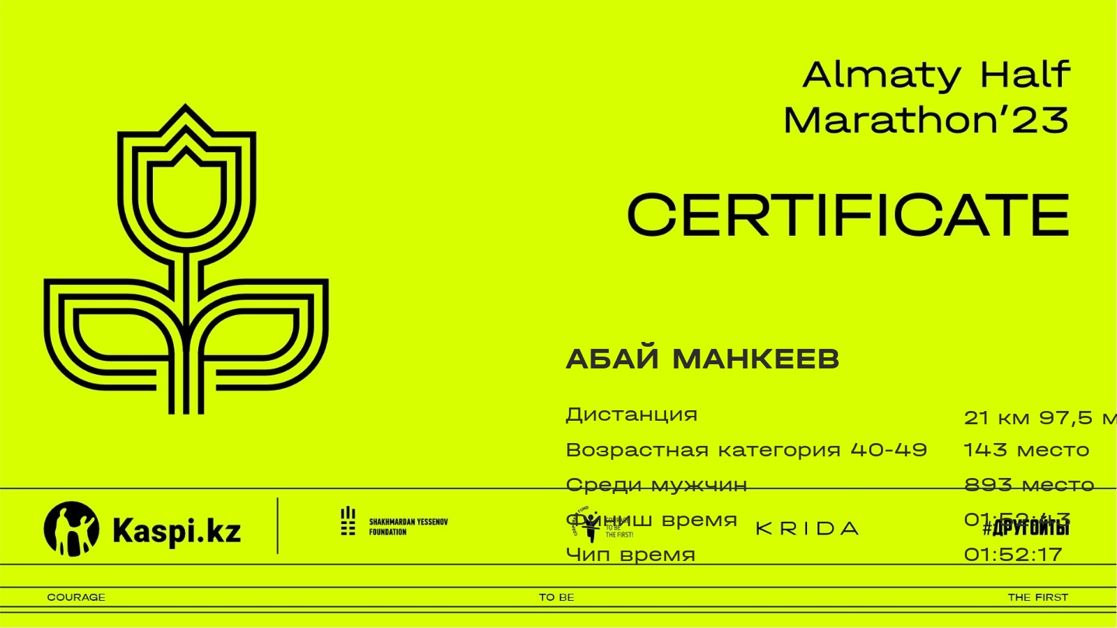 | 967 | Абай Манкеев | ![]() | Алматы | 1879 | 00:25:22.96 | 00:54:21.33 | 01:19:23.48 | 01:46:49.85 | 01:52:43.72 | 01:52:17.13 | Скачать |