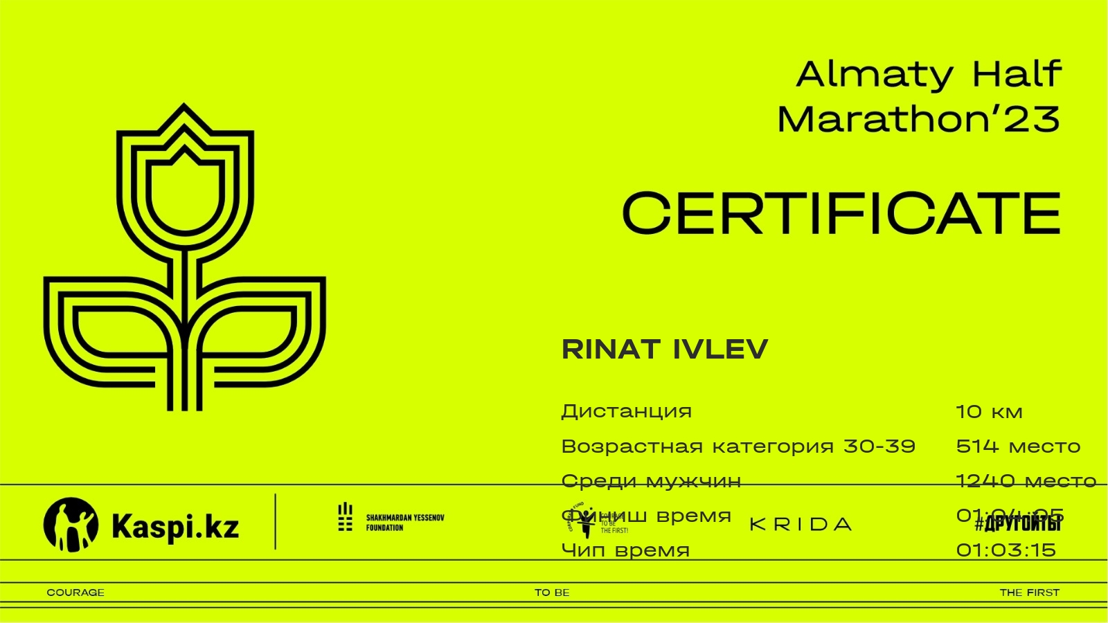 | 1737 | Rinat Ivlev | ![]() | Almaty | 4001 | 00:42:29.05 | 01:04:05.77 | 01:03:15.84 | Скачать |