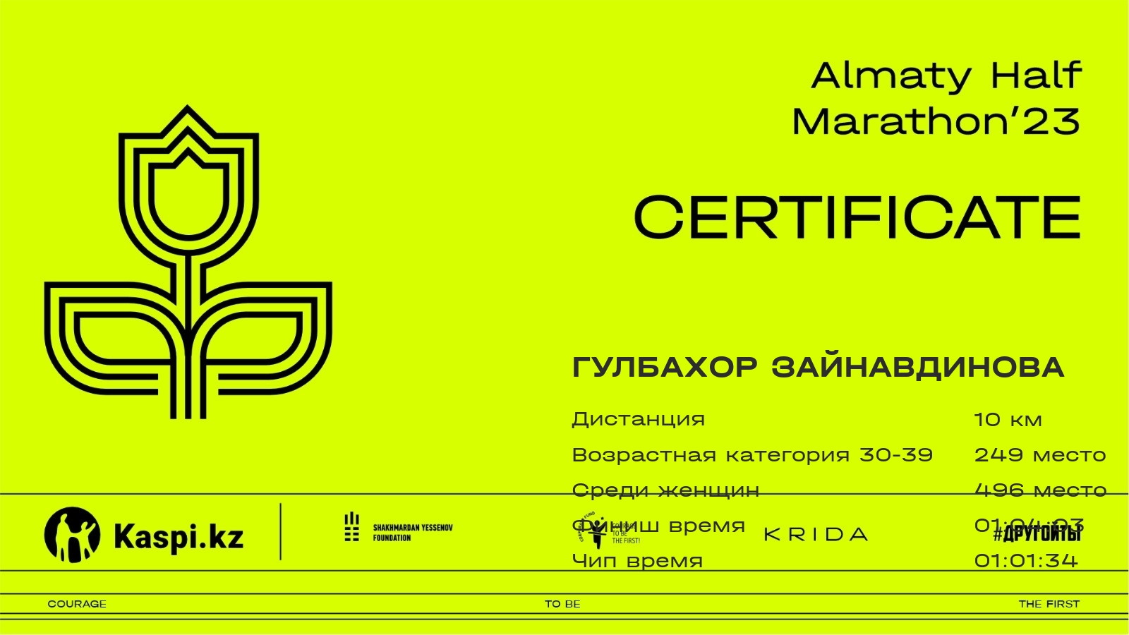 | 1733 | Гулбахор Зайнавдинова | ![]() | Алматы | 6880 | 00:44:47.38 | 01:04:03.14 | 01:01:34.72 | Скачать |