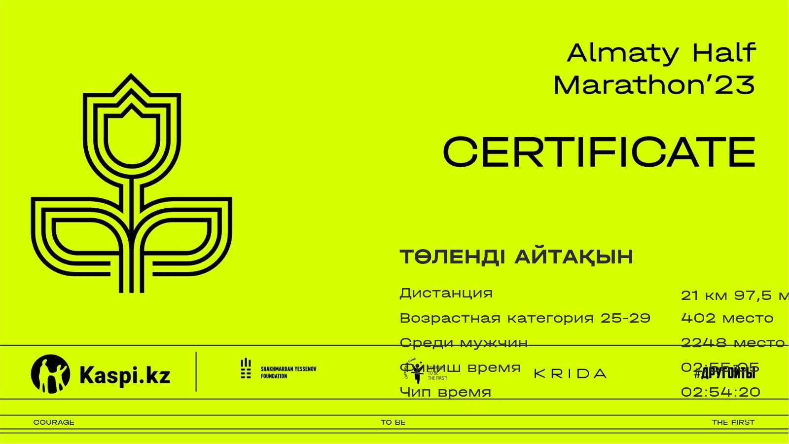 | 2018 | Ансар Коноваленко | ![]() | Almaty | 2829 | 00:26:37.06 | 01:01:31.03 | 01:32:21.38 | 02:08:37.87 | 02:16:30.95 | 02:16:07.33 | Скачать |