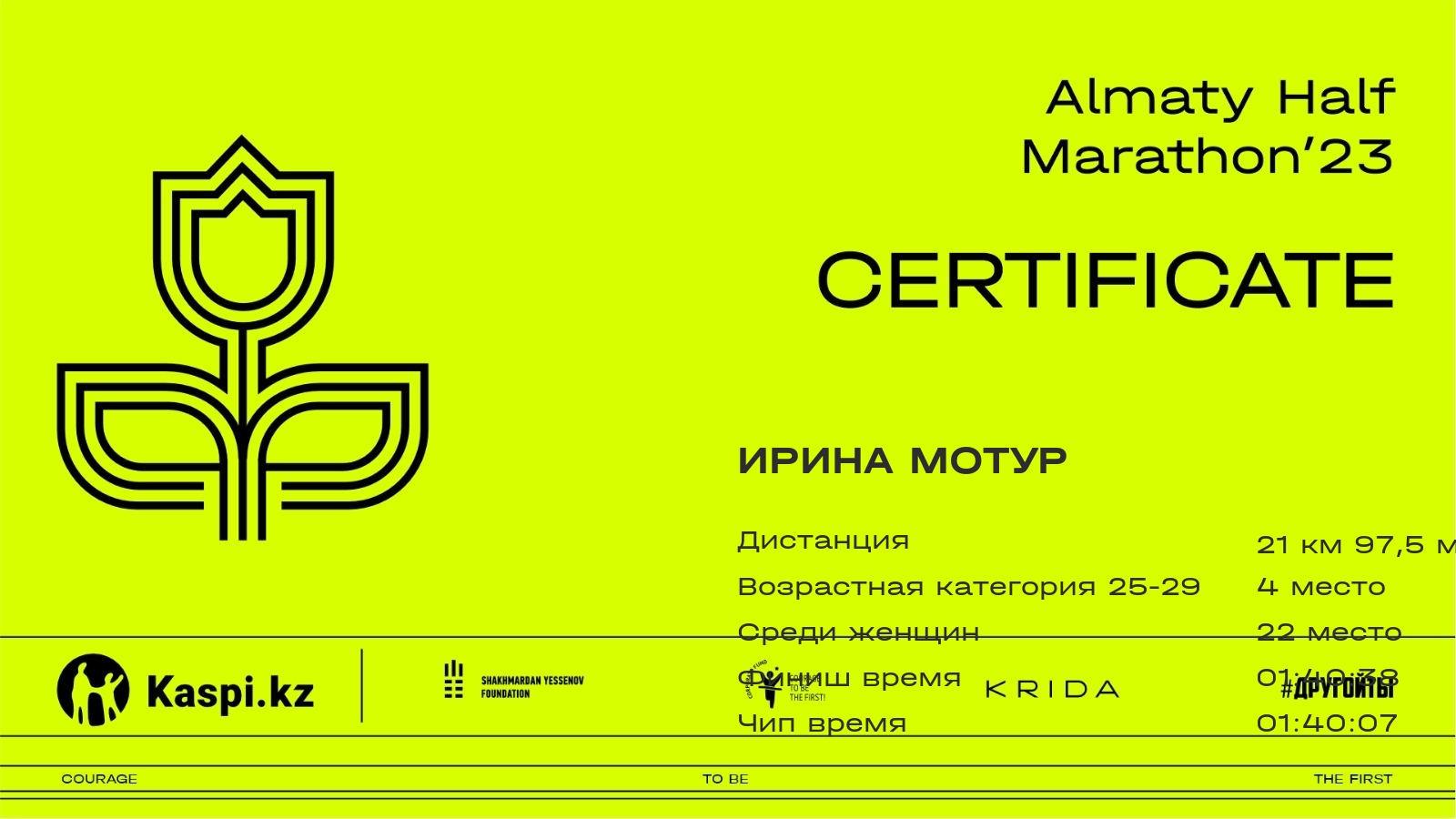 | 428 | Данат Касымкулов | ![]() | Алматы | 227 | 00:23:14.08 | 00:48:32.06 | 01:11:34.80 | 01:35:00.50 | 01:39:42.84 | 01:39:09.77 | Скачать |