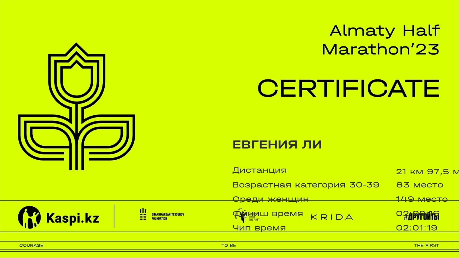 | 1407 | Евгения Ли | ![]() | Алматы | 245 | 00:29:06.59 | 01:01:22.83 | 01:28:09.65 | 01:56:21.22 | 02:02:16.64 | 02:01:19.28 | Скачать |