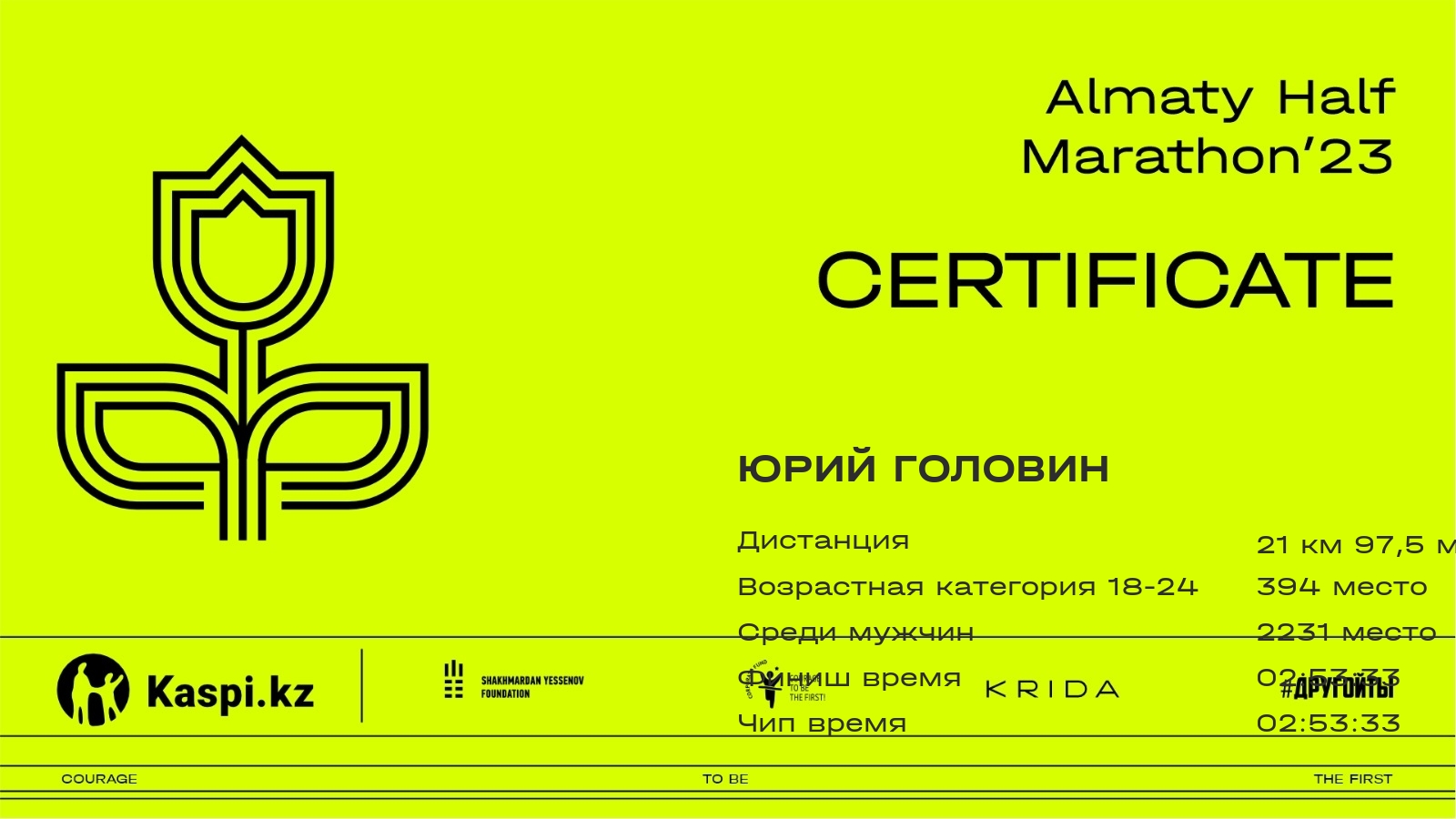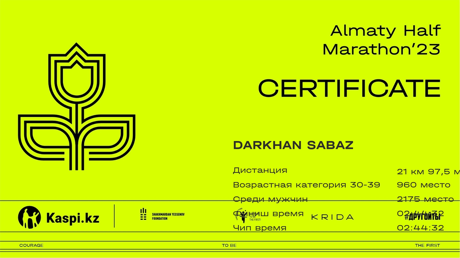| DNF | Алмаз Коляков | ![]() | Алматы | 2518 | 00:35:52 | 01:24:54 | 02:08:34 | --:--:-- | --:--:-- | ||
