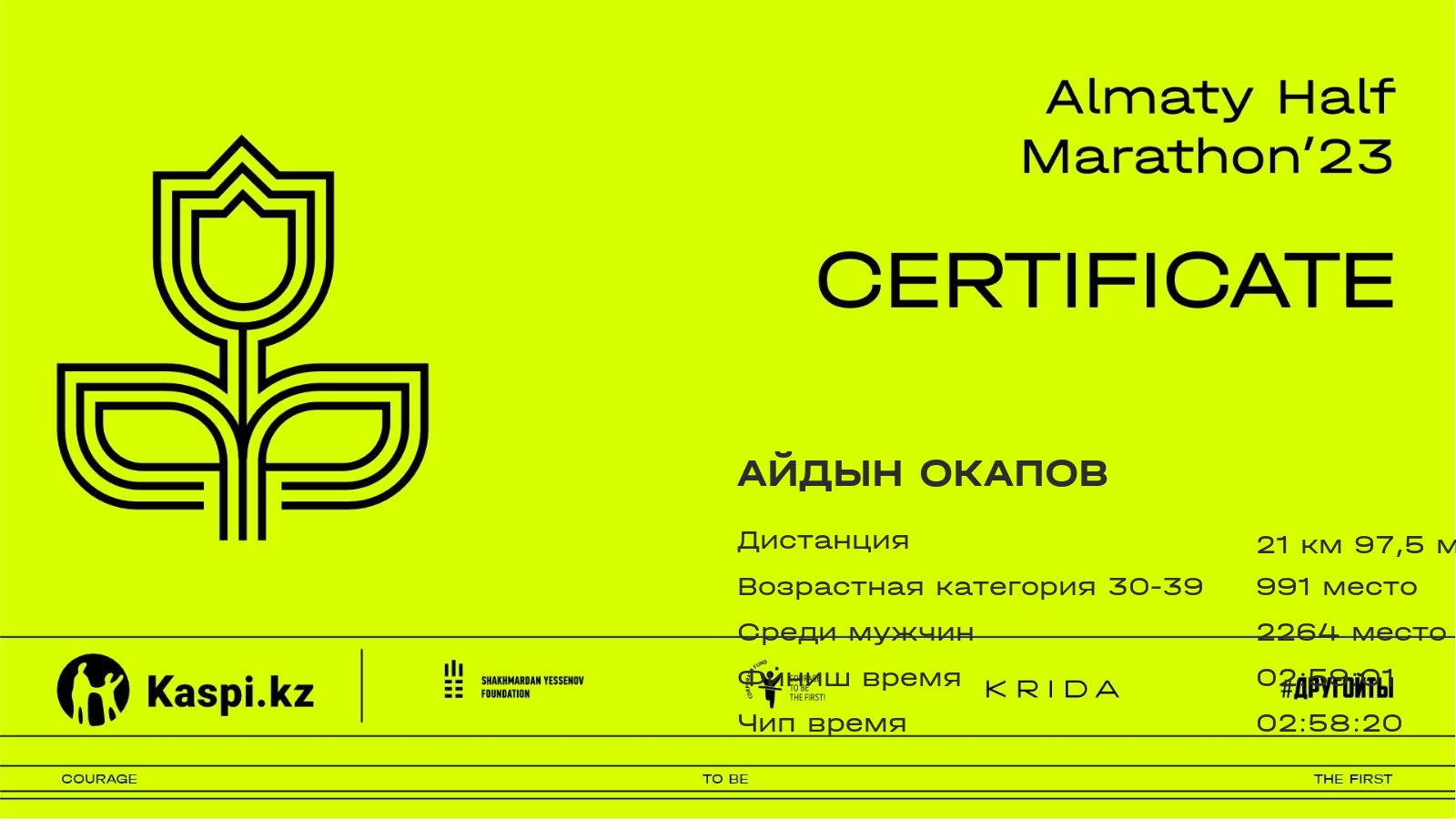 | DSQ | Асем Кусаинова | ![]() | Алматы | 3128 | 03:00:50.27 | 02:58:29.31 | |||||