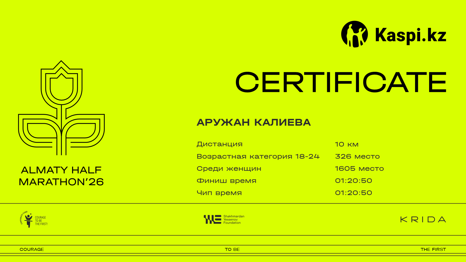 | 2242 | Айгерим Жексенова | ![]() | Астана | 8403 | 00:47:40 | 01:43:15 | 01:41:07 | Скачать | |