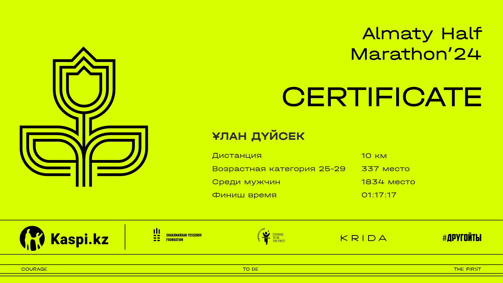| 3034 | Мадияр Баяхметов | ![]() | Almaty | 8013 | 00:54:27 | 01:18:15 | 01:15:59 | Скачать |