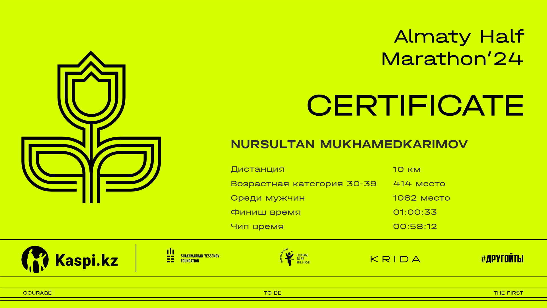 | 2266 | Nurtas Sultanov | ![]() | Алматы | 4230 | 00:45:44 | 01:09:06 | 01:08:50 | Скачать |