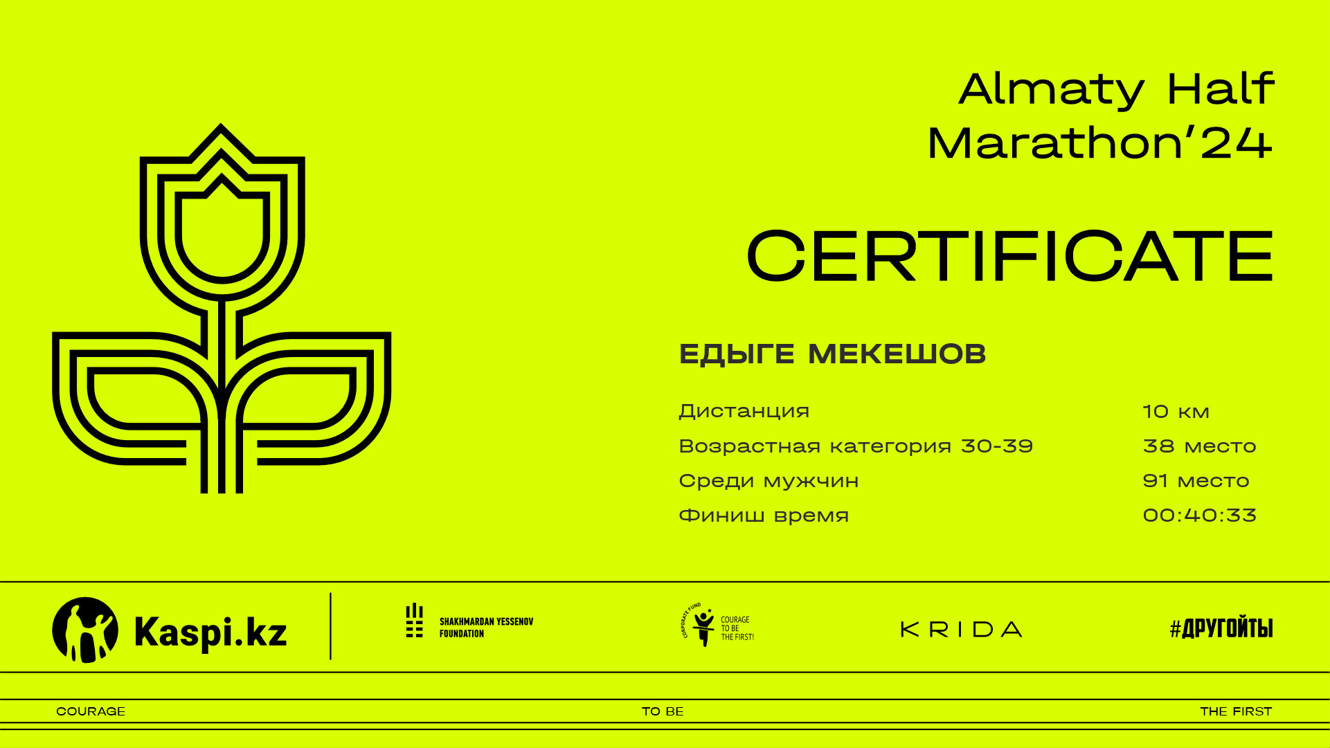 | 93 | Жанибек Джангозин | ![]() | Алматы | 3956 | 00:26:53 | 00:40:01 | 00:39:43 | Скачать |
