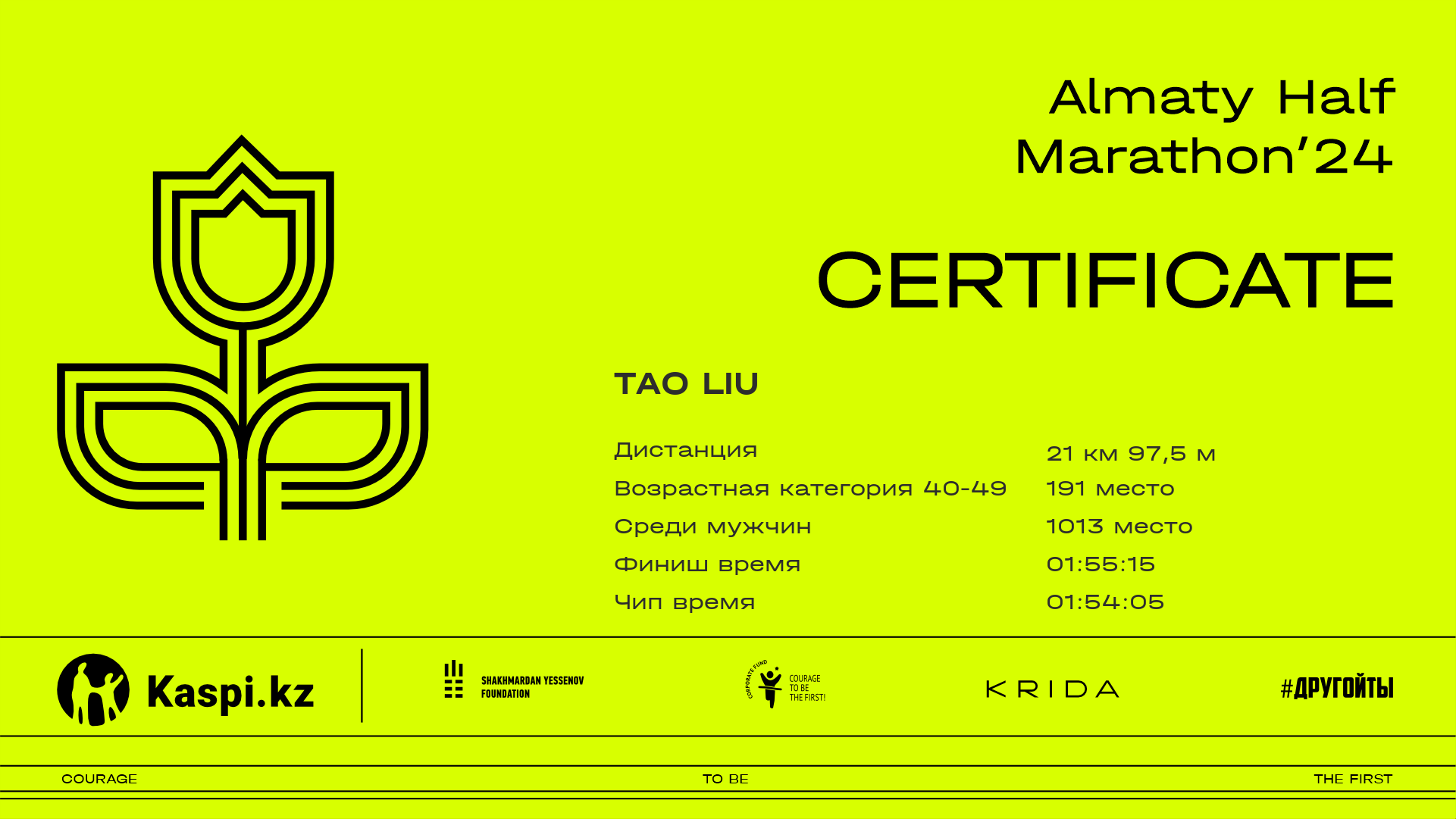 | 2021 | Dauren Baizhigitov | ![]() | Kokshetau | 2204 | 00:34:34 | 01:11:11 | 01:42:31 | 02:10:46 | 02:16:59 | 02:15:50 | Скачать |