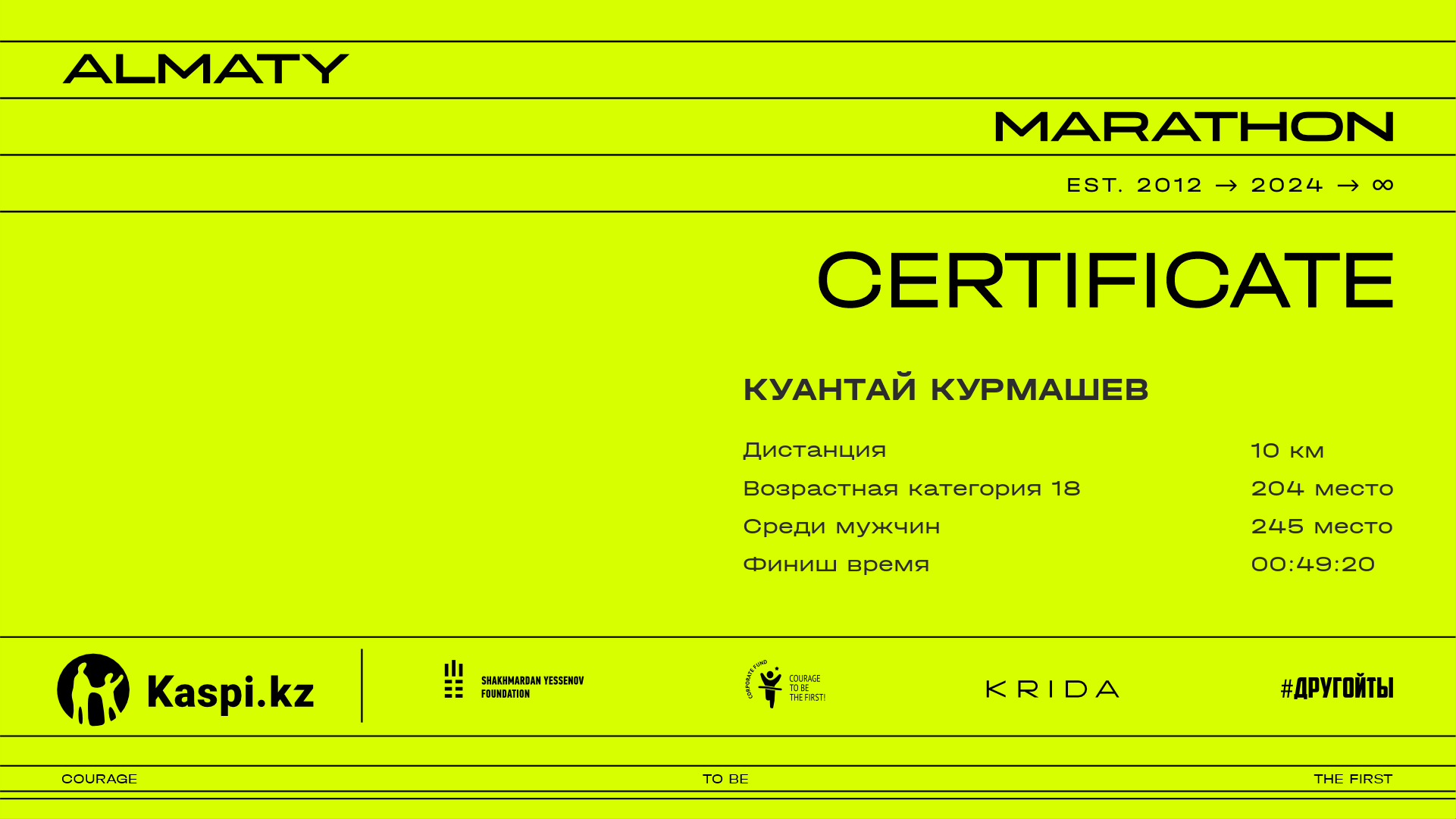 | 276 | Ролан Магамед | ![]() | Алматы | 8858 | 00:35:32.02 | 00:49:22.78 | 00:48:58.30 | Скачать |