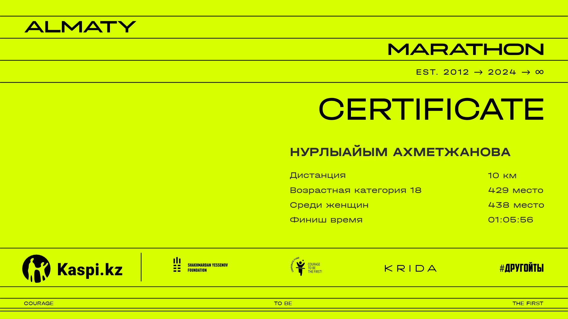 | 2026 | Нурсултан Тезекпаев | ![]() | Алматы | 10146 | 00:49:08.52 | 01:07:08.44 | 01:06:08.46 | Скачать |