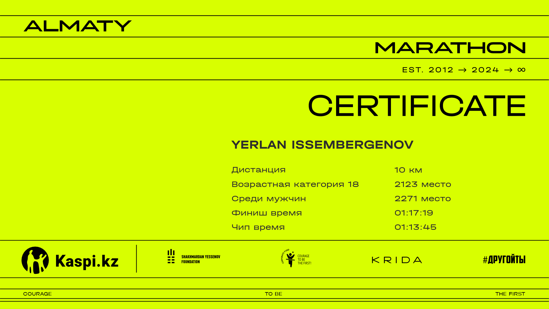 | 3566 | Ескендір Сауданбек | ![]() | Алматы | 9447 | 00:56:19.19 | 01:17:23.27 | 01:16:55.06 | Скачать |