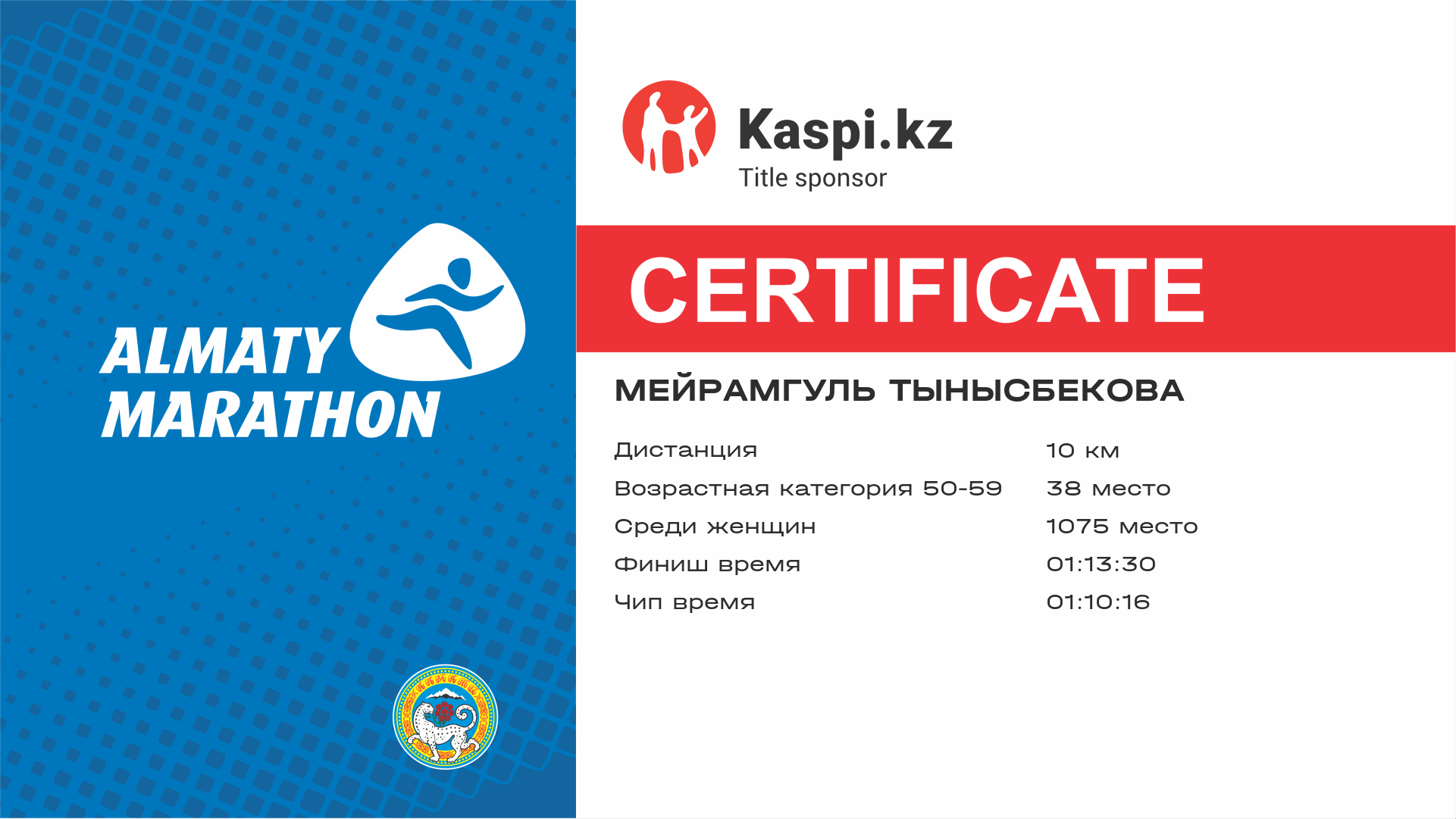 | 5658 | Назгуль Азнабакиева | ![]() | Алматы | 12802 | 01:01:42 | 01:25:47 | 01:22:20 | Скачать |