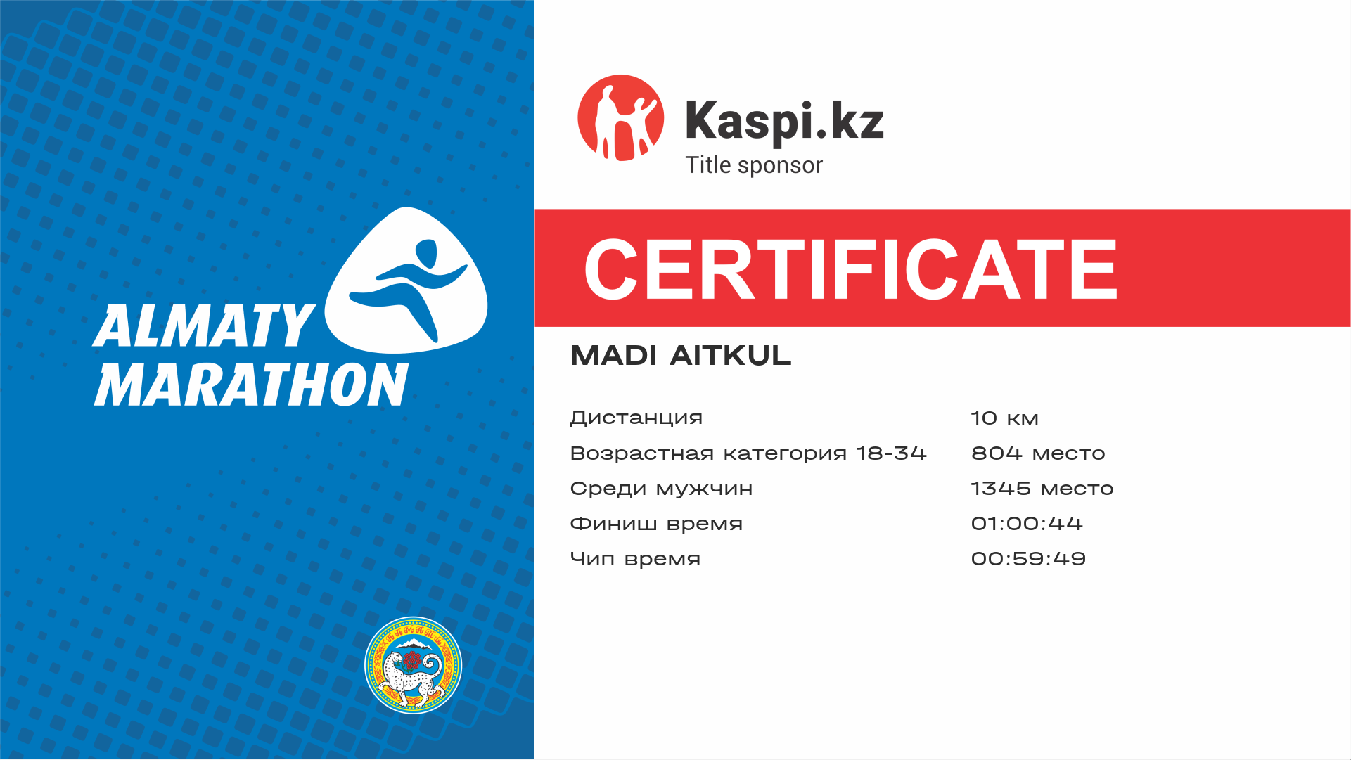 | 2127 | Серик Айдарханов | ![]() | Алматы | 13483 | 00:46:09 | 01:03:53 | 01:03:17 | Скачать |